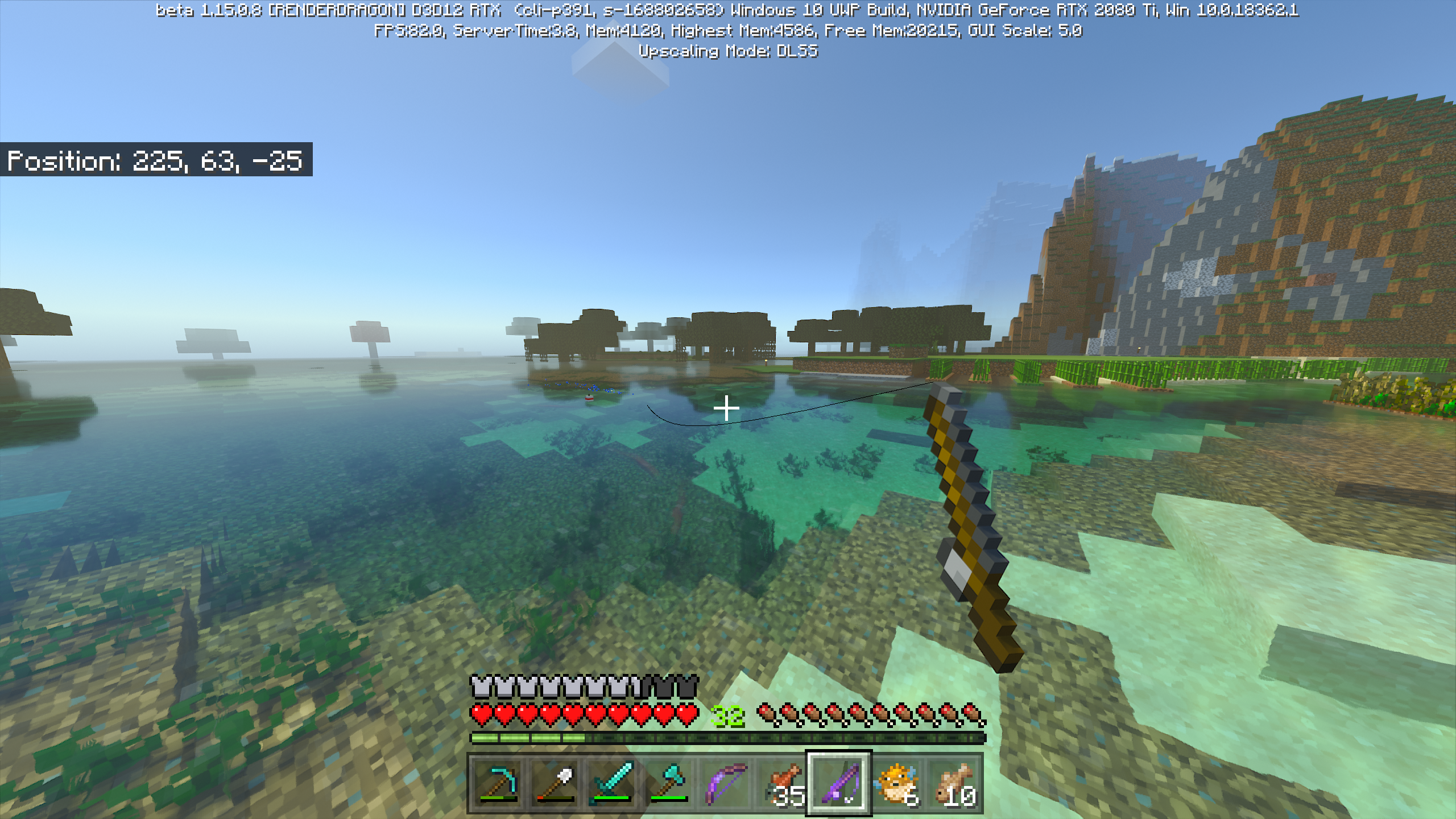 Fishing rod line that comes out of the rod moves with the camera, and only lines up with the bobber when the cursor is aligned with it.