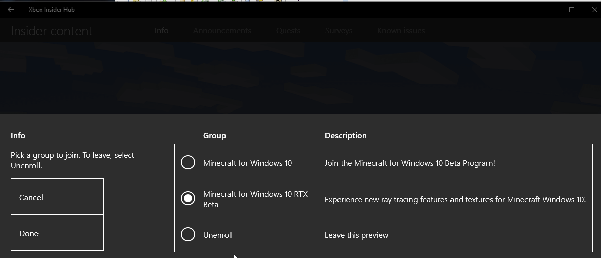 joined with the Xbox Insider Hub ab to the RTX Beta