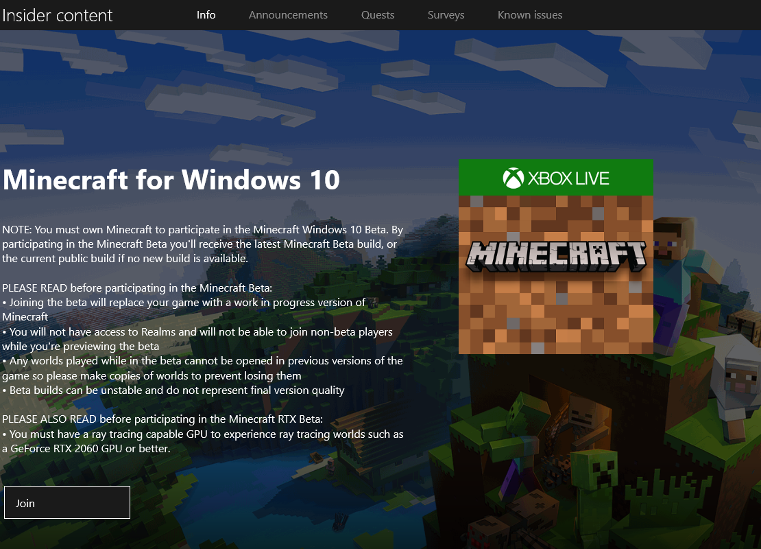 avigate to Insider content > Minecraft (or Minecraft for Windows 10 on PC)