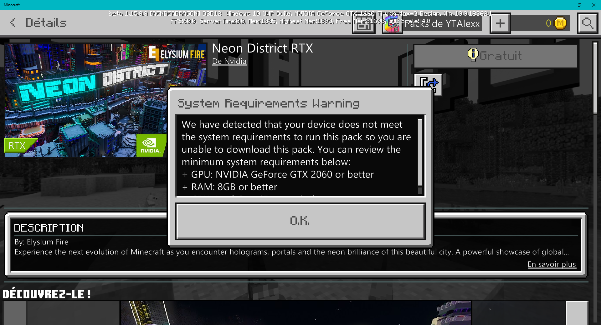 On non-supported PC, a warning is shown and requires a GTX 2060 instead of a RTX 2060