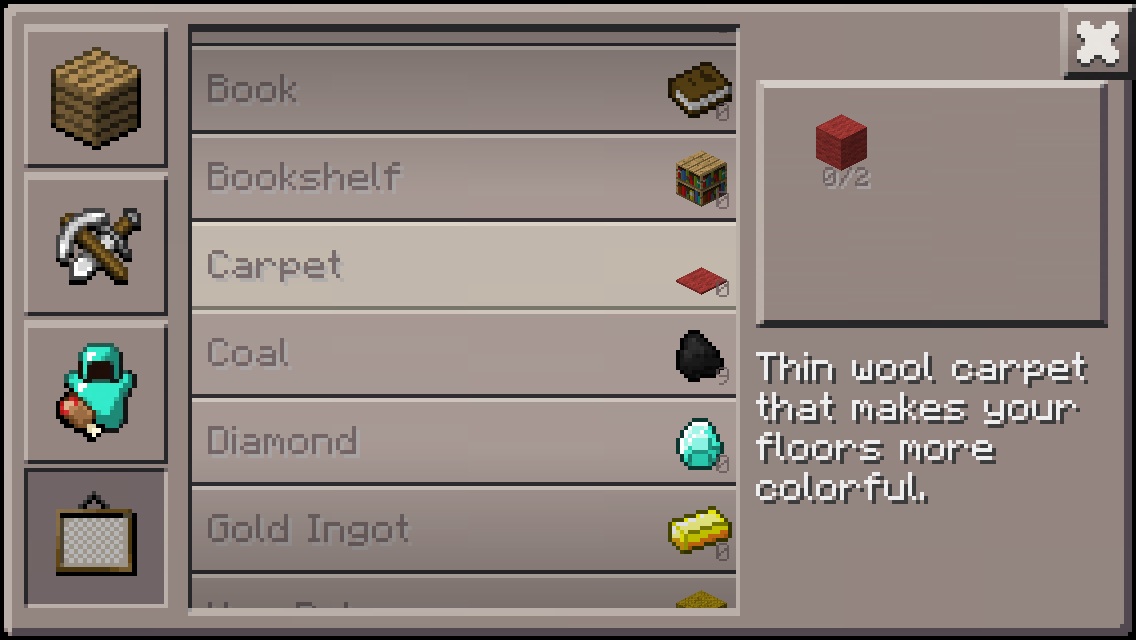 When in the crafting table, the only kind of carpet craftable is red carpet.