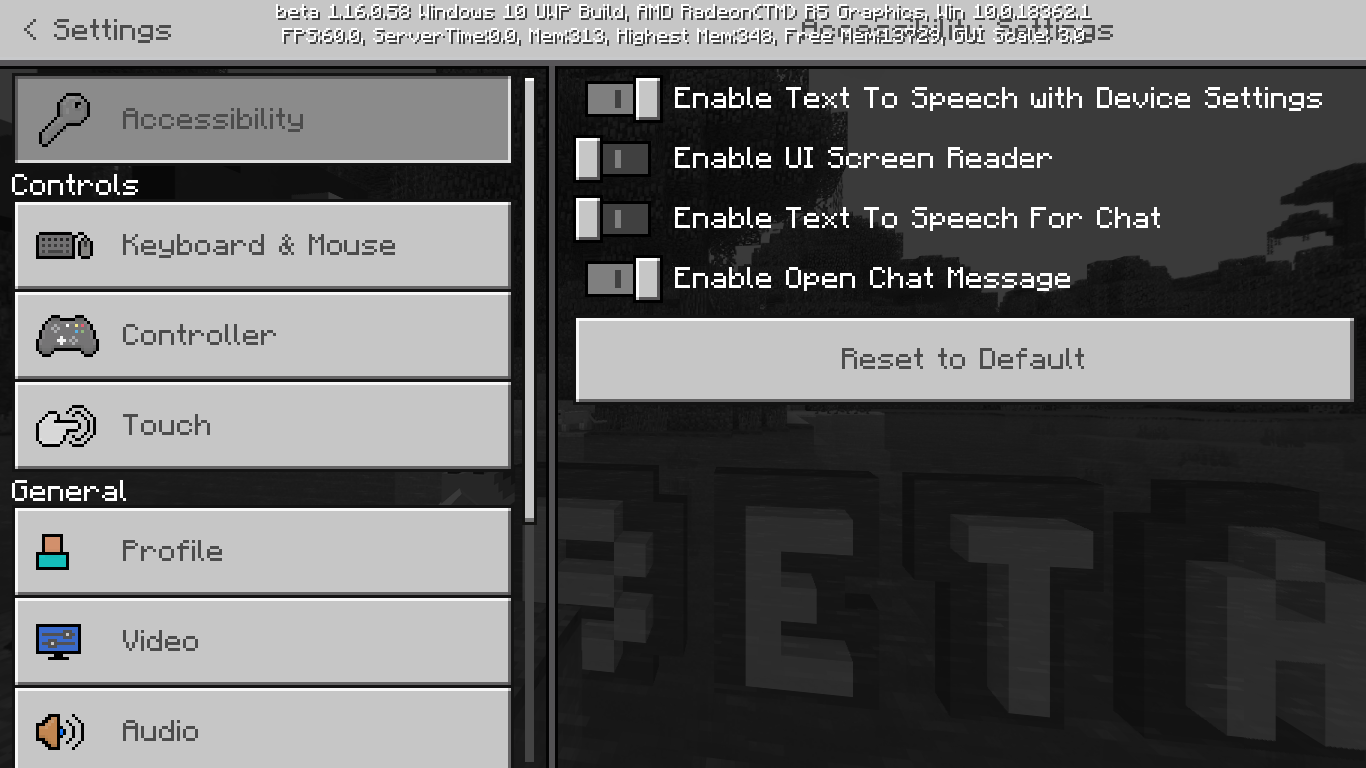 Sneak/sprint can't be switched between hold and toggle modes in accessibility settings.