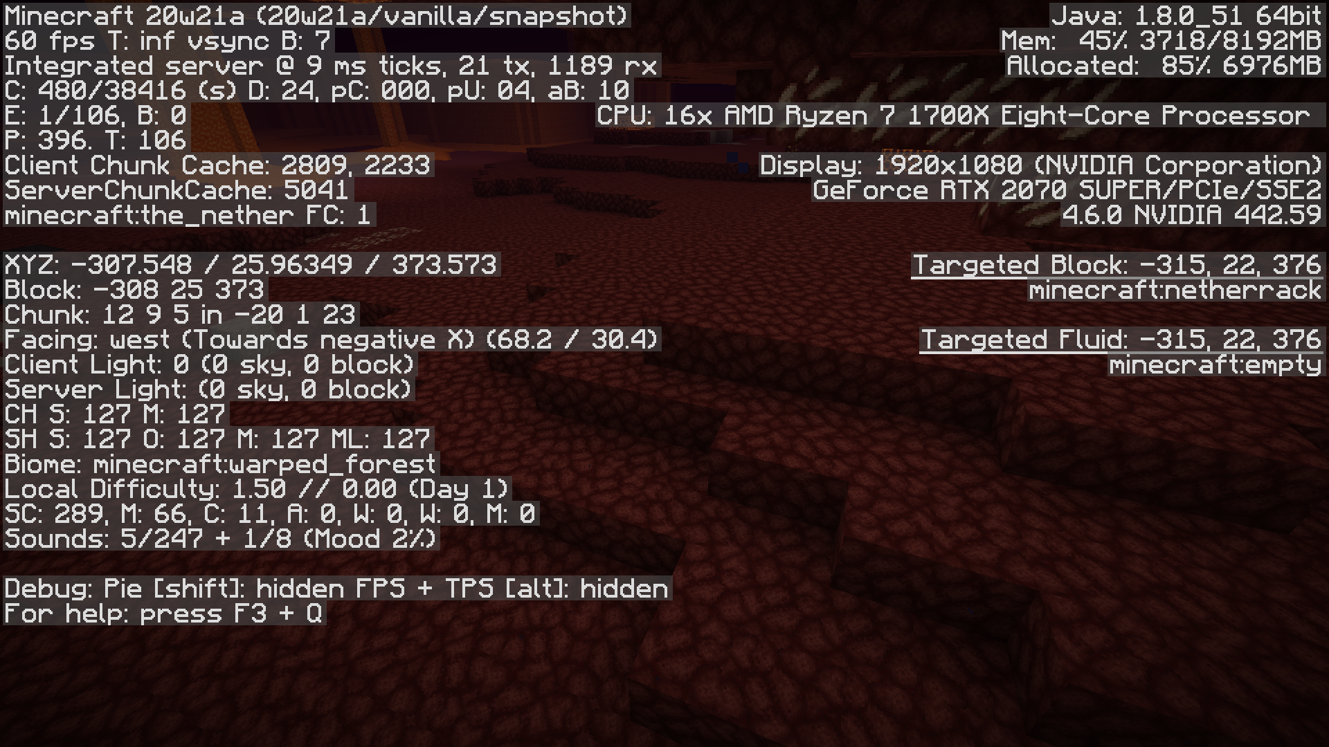 Generates the soulsand and soulsoil in soulsand valley's on java as well as basalt under the basalt delta's, so I'm unsure if it's supposed to do that there or not. However it doesnt generate the nylium in lava lakes on java.