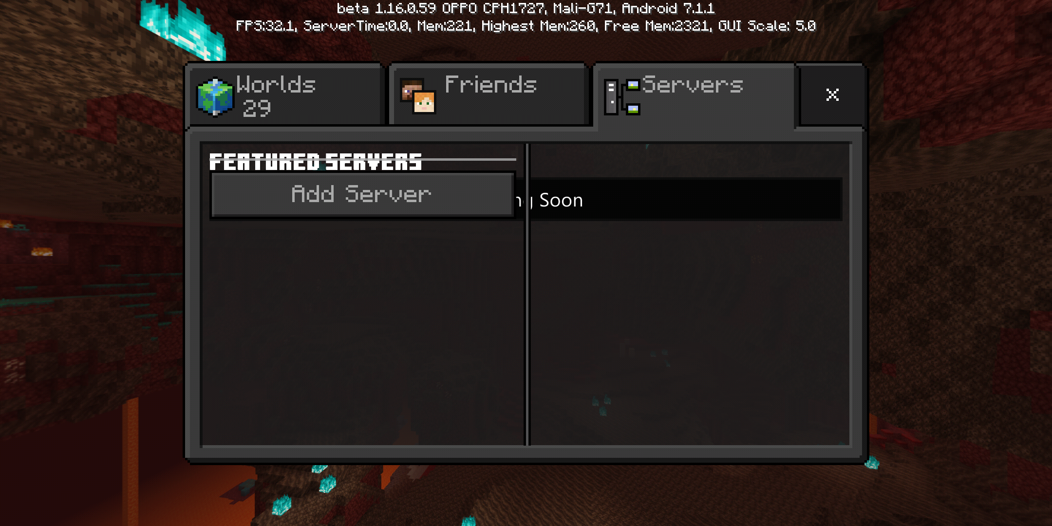 The servers tab has a bit of error. The text "Coming Soon" remained unchanged and is now being overlapped by the new design. I can't explain it in detail but I have a screenshot below.