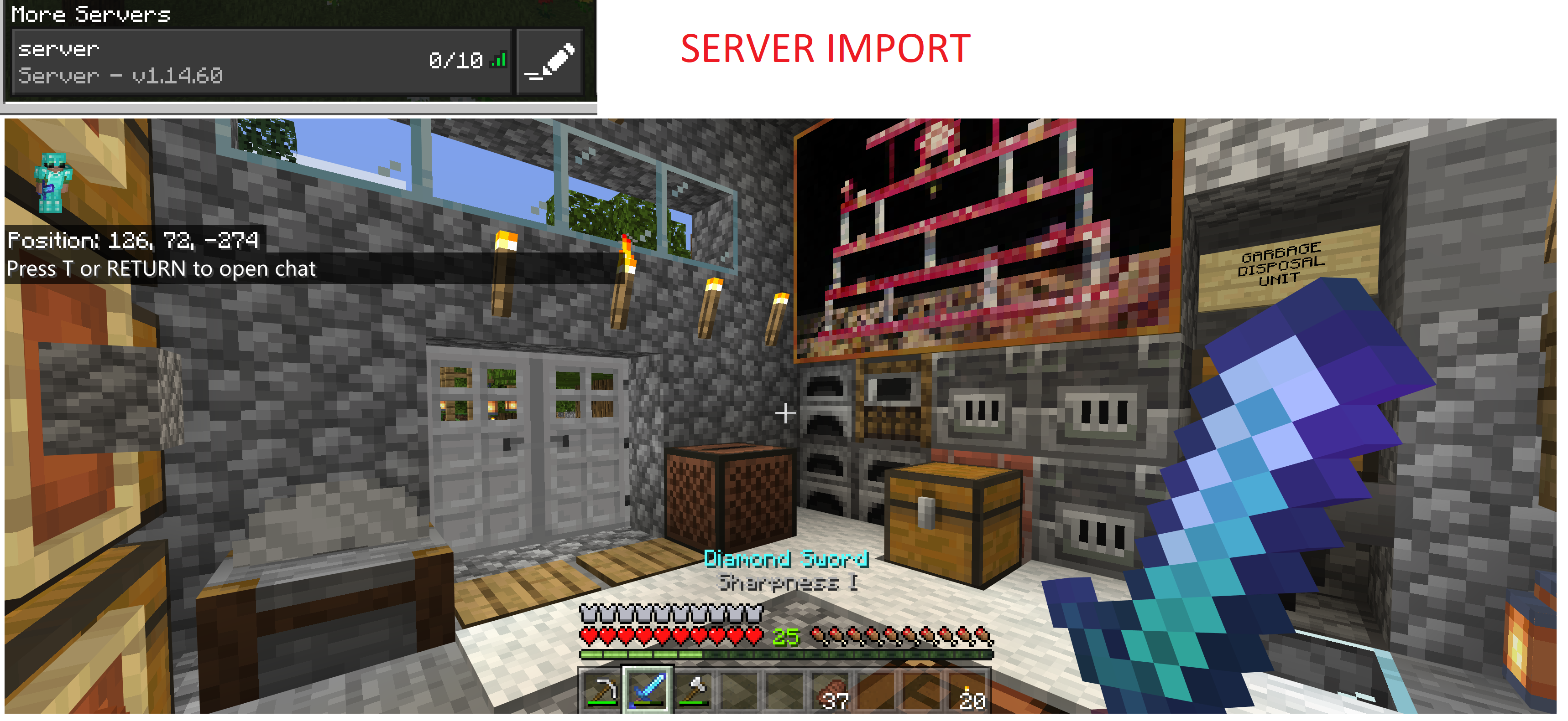 ...and import it locally and play, you'll notice that the world loads fine. Items including the enchanted sword are perfectly in tact.