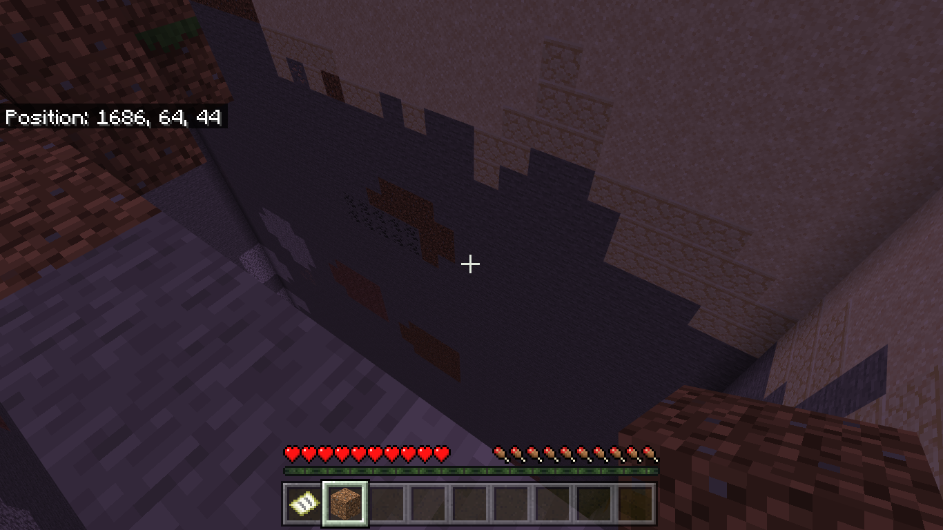 When I was playing with friends, I spawned near the bonus chest(normal) and I walked the direction that my friend said the village was in when I saw a giant rectangular hole. It appeared that I could see The Void. It has not happened much times before, so it must be Random. It also appeared that my friends were flying. I also had unlimited dirt. When I placed the dirt, Two blocks appeared and I could walk on them.