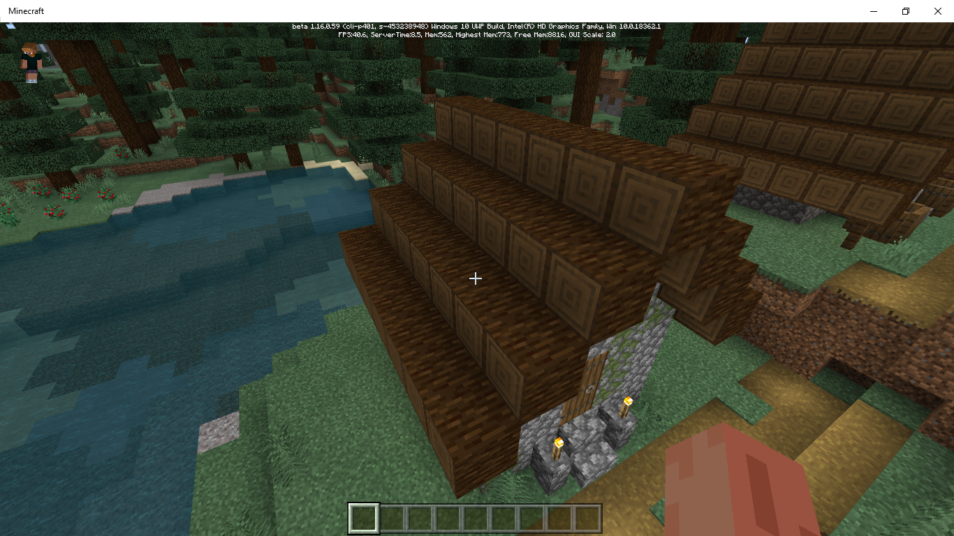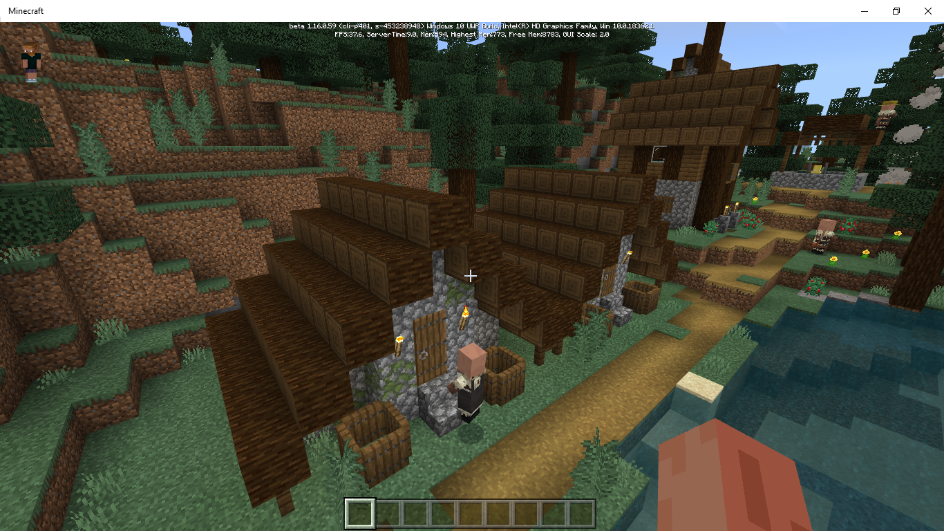 In the most recent minecraft bedrock beta, there is an issue with village generation. The spruce logs which make up the roofs of taiga villages are positioned differently. Rather than laying the long way, the wooden center sticks out on all of the houses in every village.