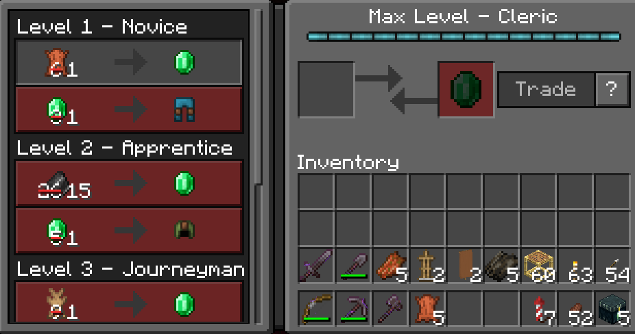 Amused on what was happening I decided to keep things as they were and traded with Bill to get them to master level. Here as you can see in the trade menu Bill is a max level cleric with the leather worker trades still.