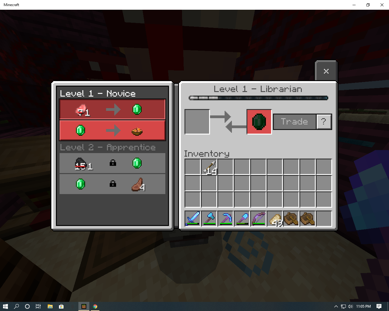Long before I had stashed some cured villagers (originally spawned as zombie villagers at night) in an open but protected area with access to beds and workstations. The only accessible workstations were brewing stands and cauldrons. A named villager, Bill for reference, chose a cauldron for a workstation and I elected not to trade with him for the time.