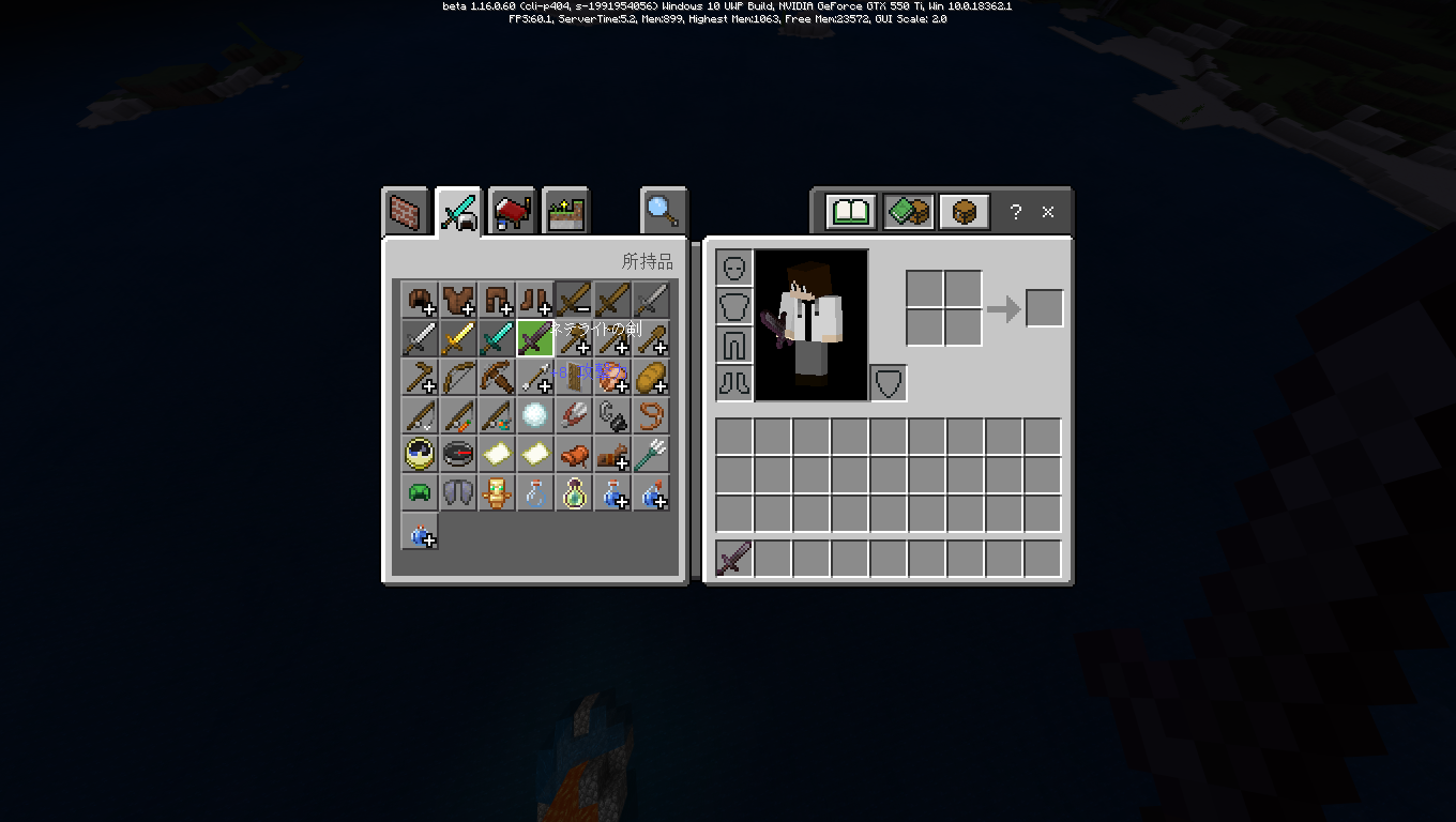 インベントリの、アイテムの詳細を表示する部分(名前、攻撃力など)の背景が消えています。