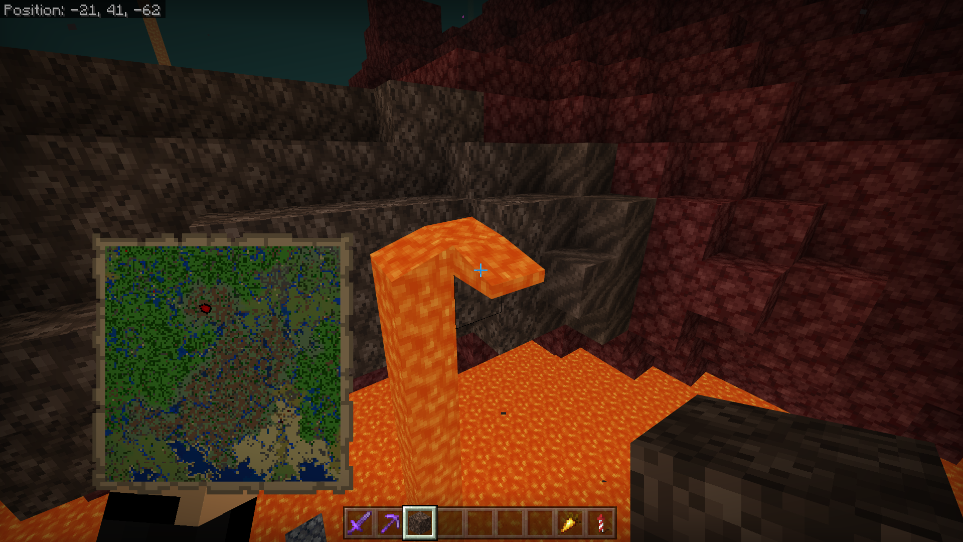 Try to locate a waterfall (in a ravine or cave) or a lavafall (in the nether)