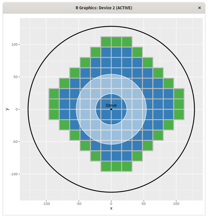 Here are three picture showing the despawn locations and ticking areas for sim distances of 4, 6, and 8. The player is standing at 0,0. Clearly there is an inconsistency with the scaling.