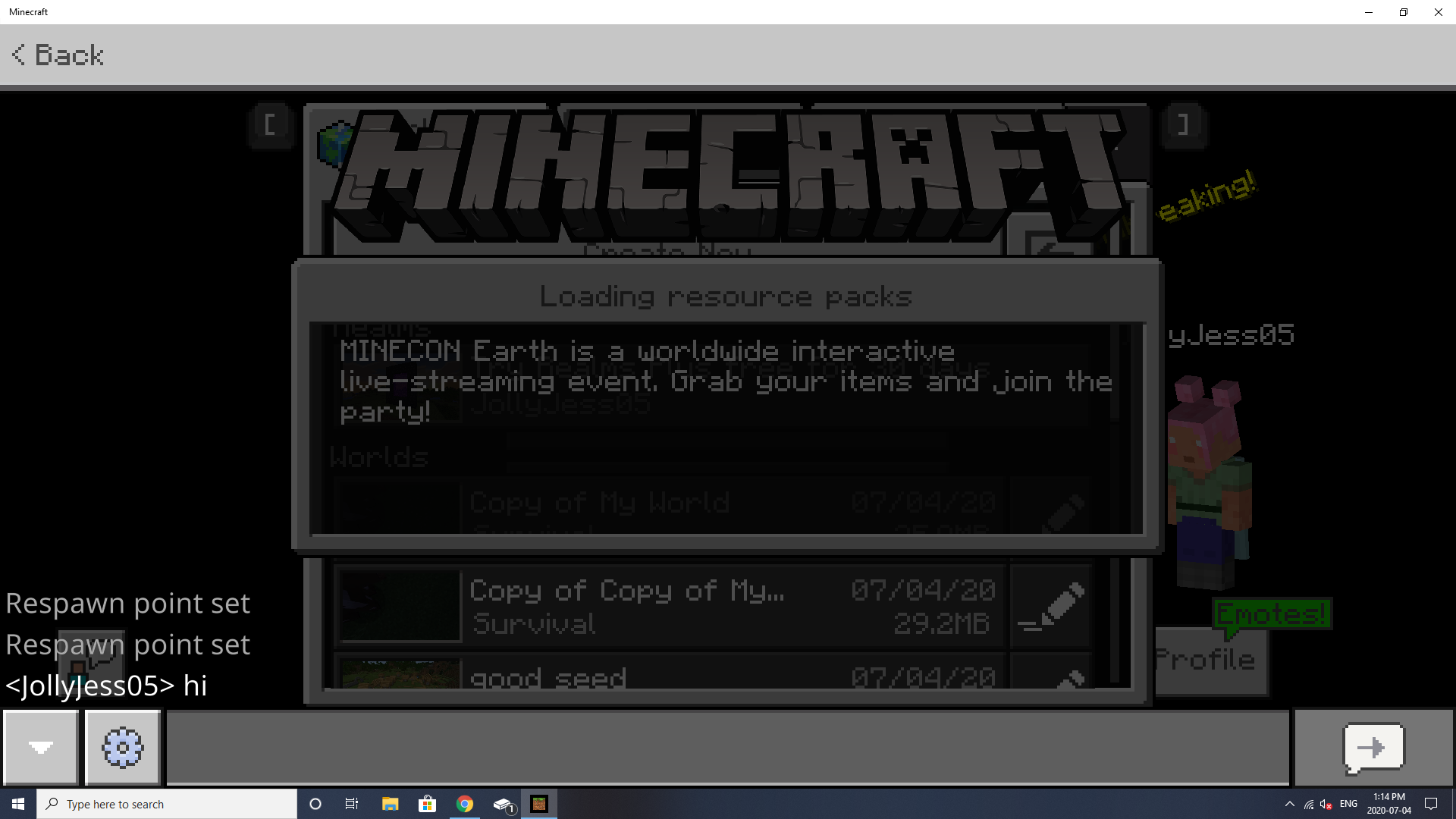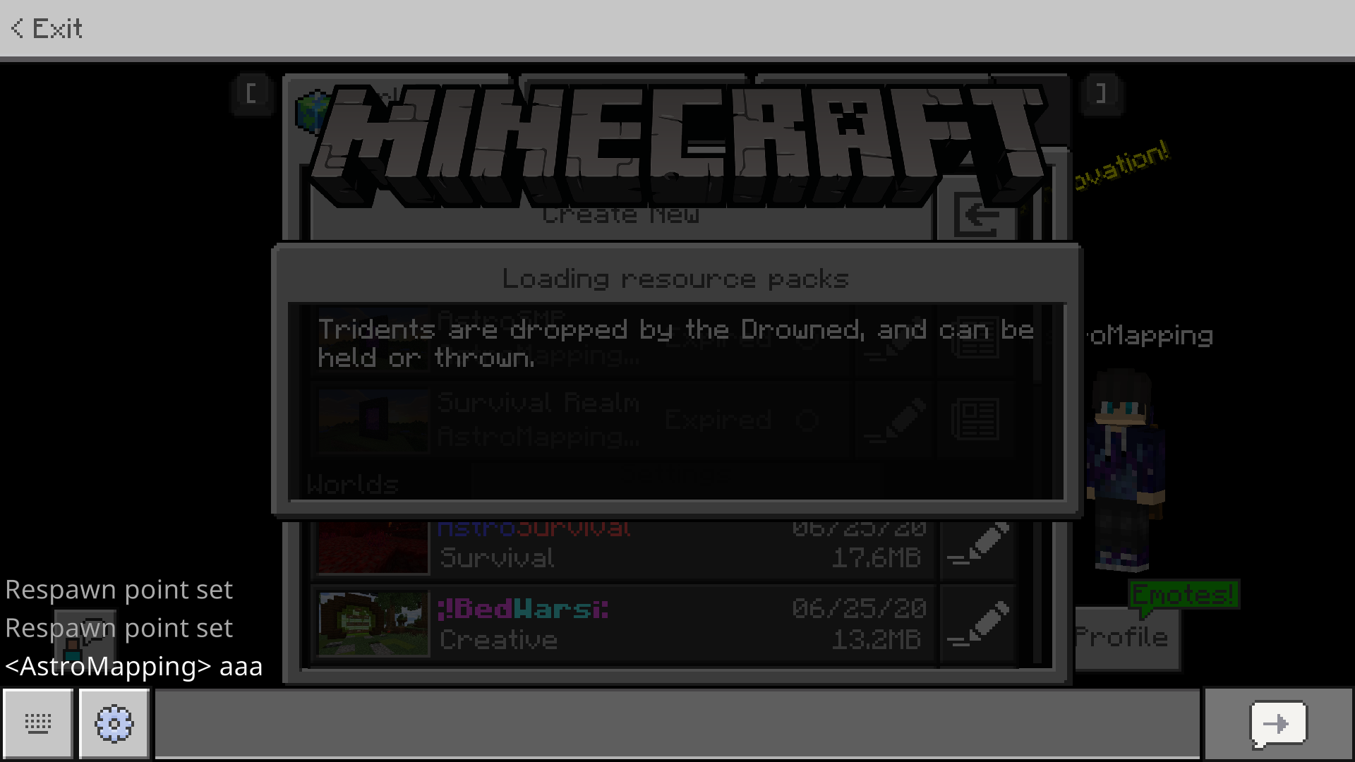 If i pressed A on (open chat) it would pull up a chat where it says 'respawn point set' infinitely many times. Which is odd because i just loaded in and didn't do anything.