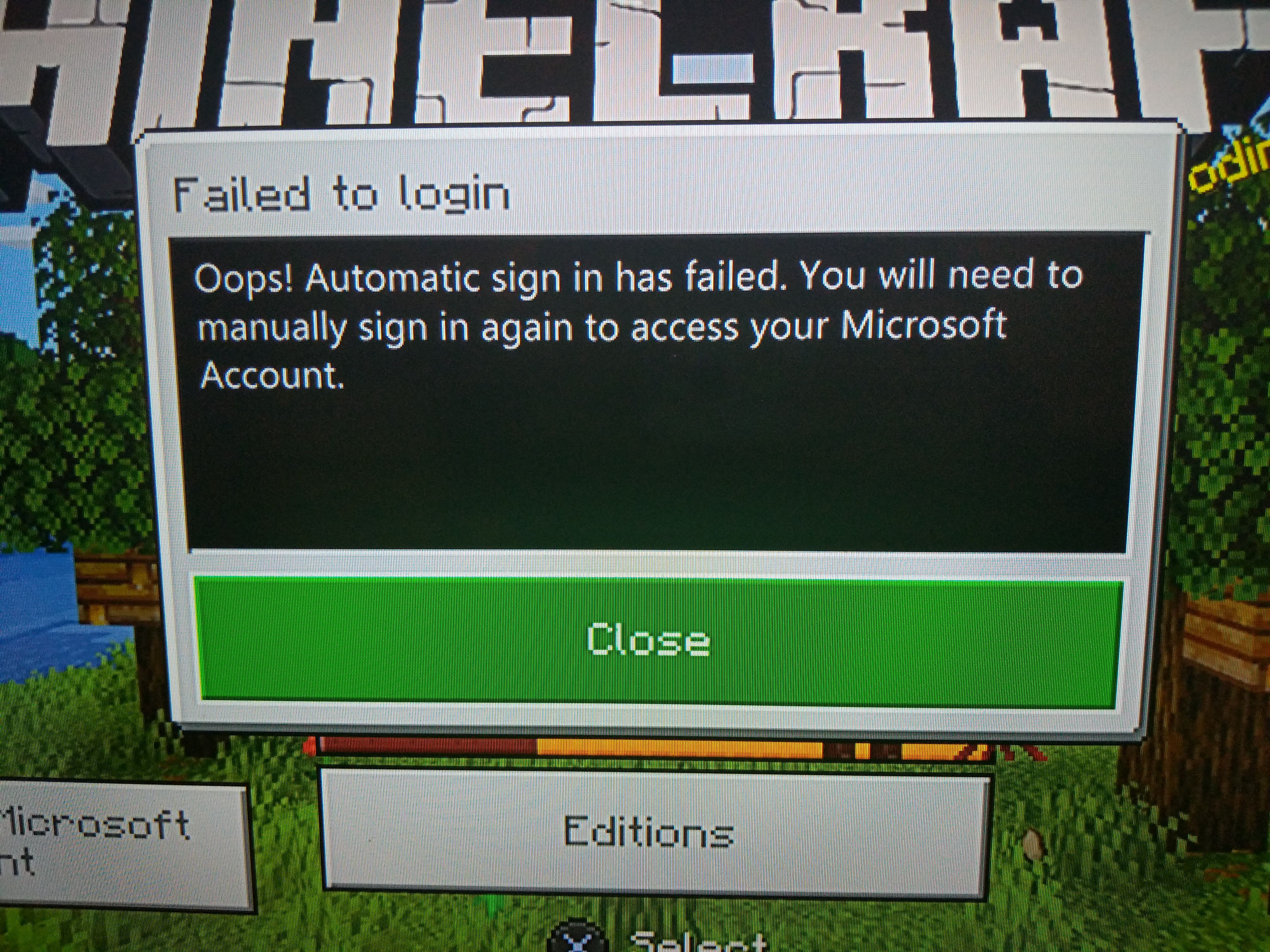 When I start up Minecraft bedrock edition on PS4 I am greeted with the message: "oops! automatic sign in has failed. You will need to manually sign in again to access your Microsoft account." I am only able to select okay and in the bottom left corner it has a sign in button for Microsoft accounts. When I select it it takes a second and then says: "we tried to sign you in to your Microsoft account, but something went wrong." Again all I can do is close the message. If I click the play button and go to the friends tab, it also says I'm not logged in. Clicking "find cross-platform friends" I get another place to sign in with a Microsoft account. Clicking the "sign in for free!" Button it just takes me back to the previous friends tab. I really don't know what I can do, and it's been like this for three days now.
