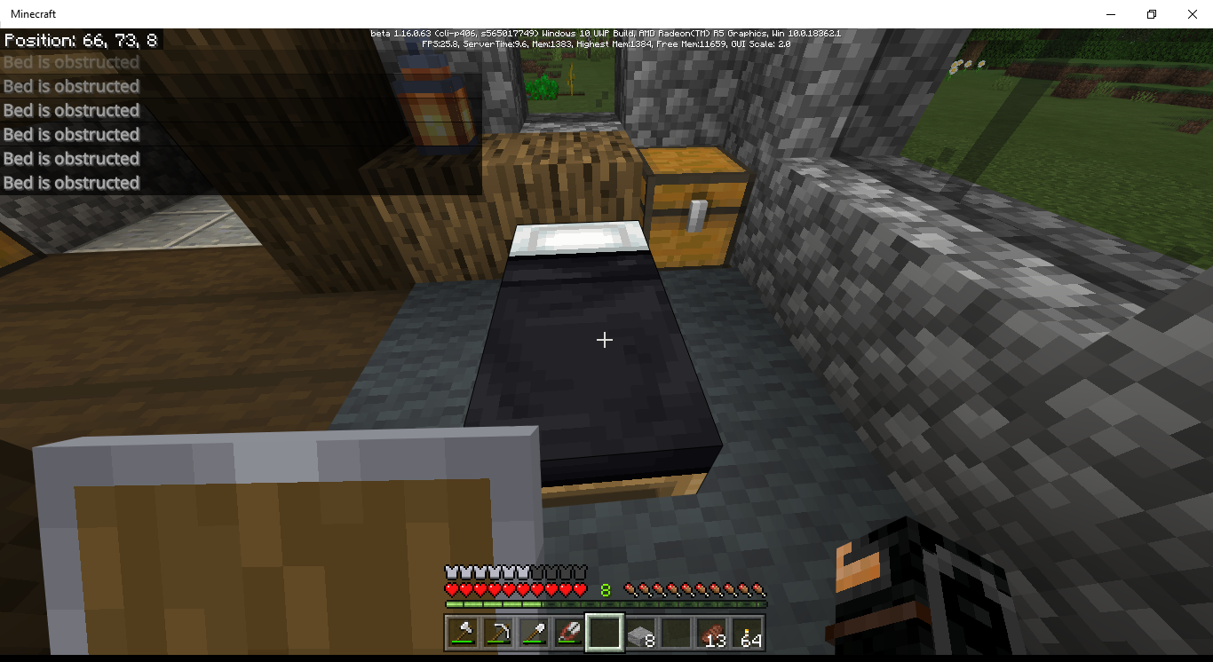Issue: I clicked on my bed to sleep. The message “bed obstructed” came up.