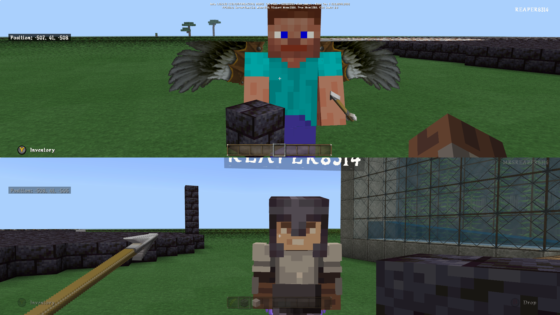 I was flying around a creative super flat using the elytra. Once I landed, the elytra looked like it was still deployed. It only affected player 2 in split screen