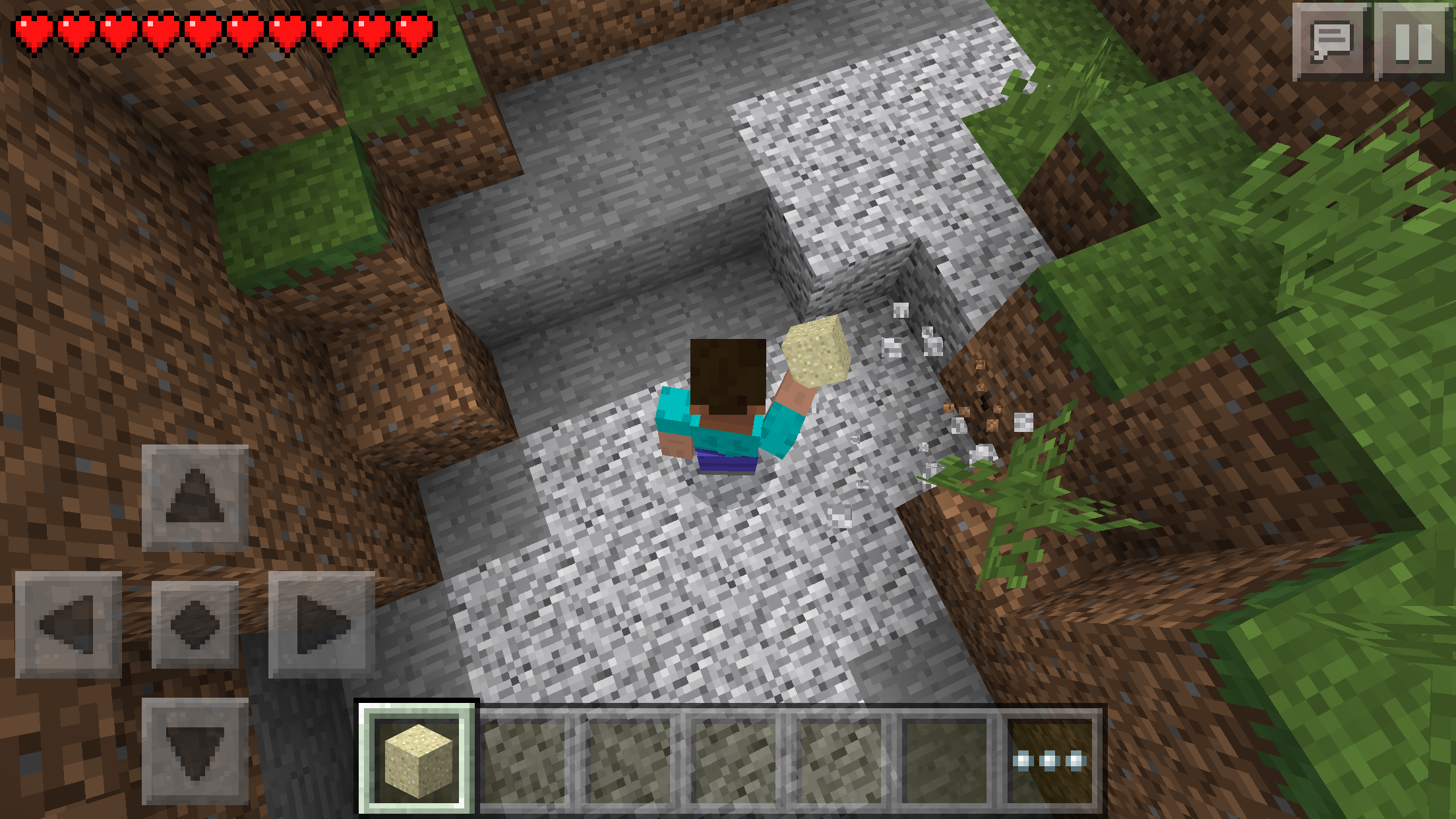 Im playing in survival mode, I go up to any type of material (ex. stone, , granite) and i destroy it expecting to be able to pick it up to us it for building.