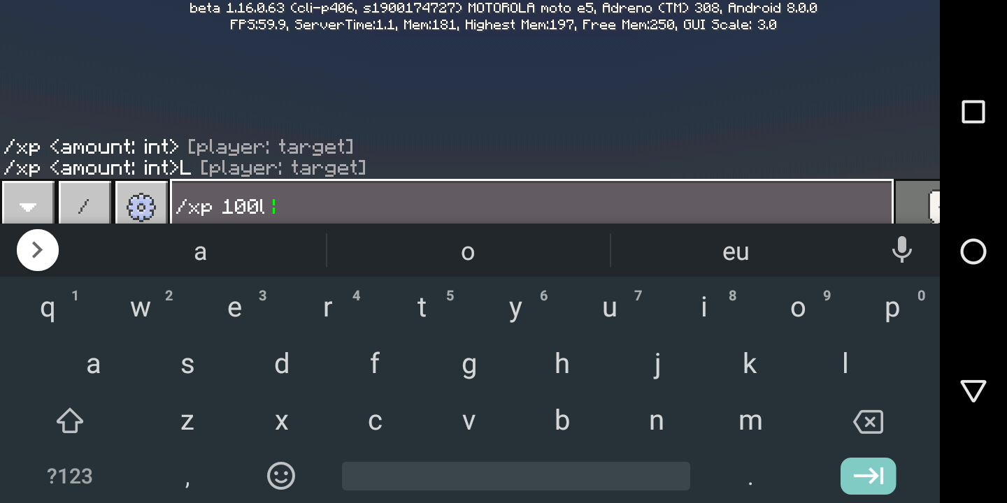 when I put the "L" on 100, it doesn't work, I put the following / xp 100l @s and it didn't work, is it a bug or am I putting it wrong?