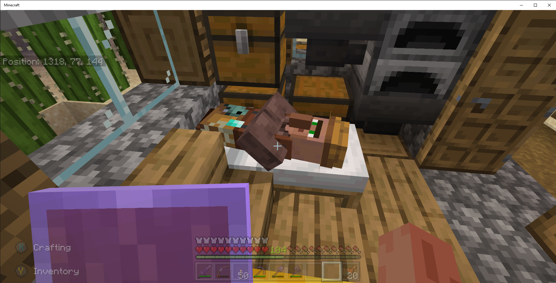 Windows 10 PC Bedrock v1.16.100.57 the villagers are sleeping in wonky positions, see attached screen shots.