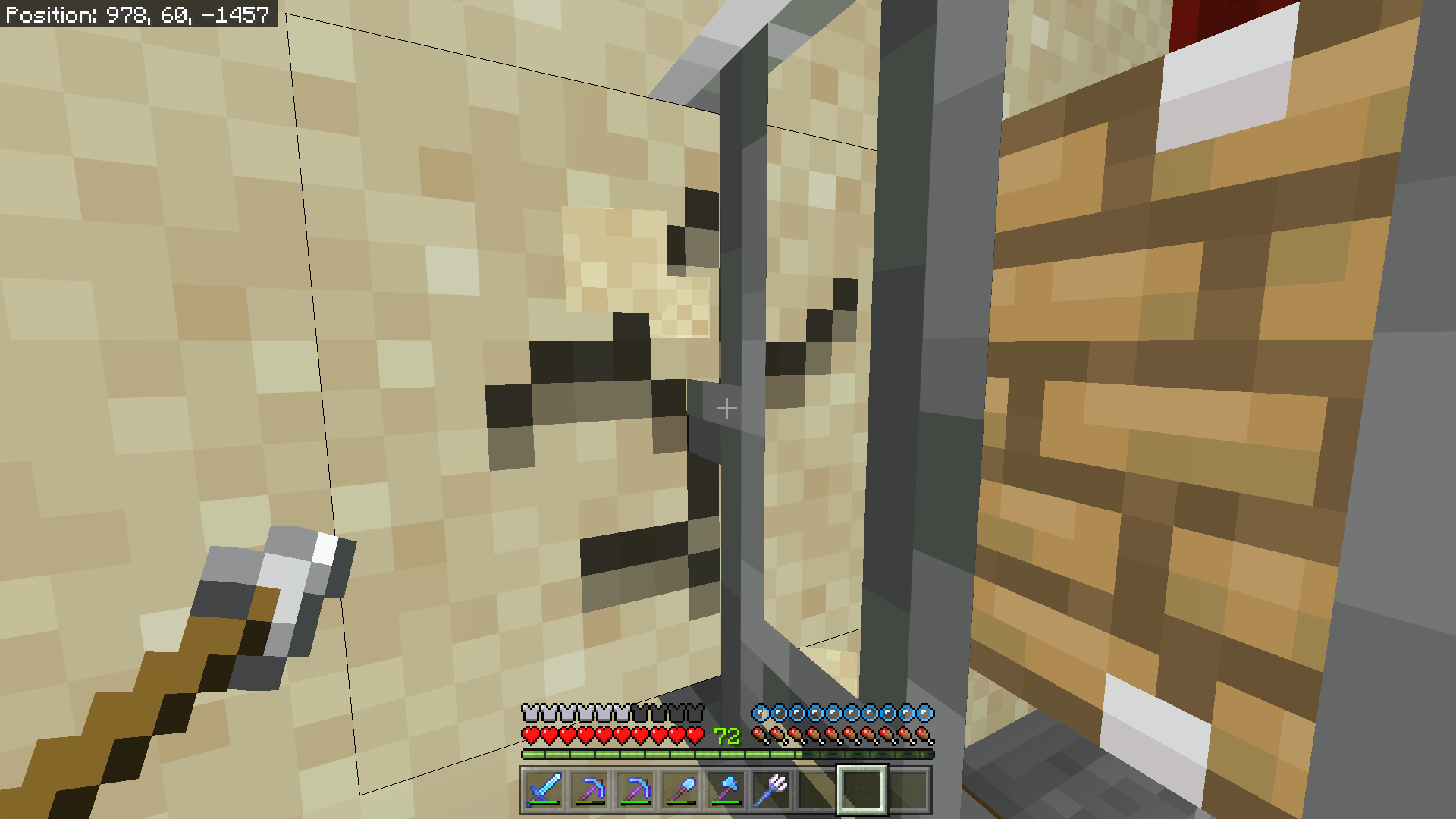 /effect @p water_breathing 1000/give @p netherite_shovel(or whatever tool breaks the line of blocks the fastest)Attempt to break the waterlogged glass pane while facing the line of blocks.