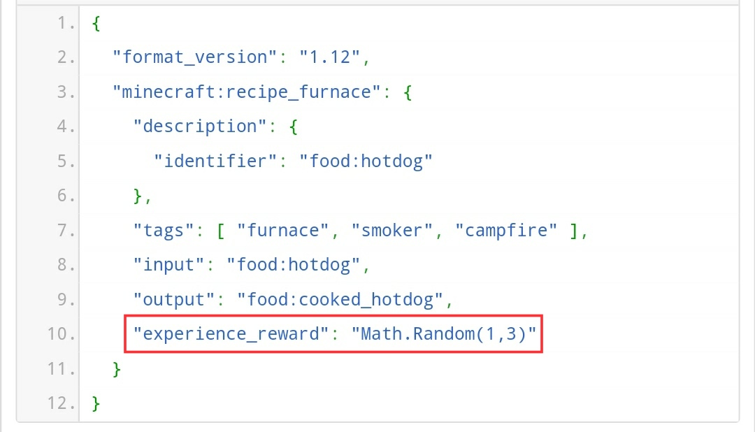 I thought I should get some experience, so I read Minecraft Experience Wikipedia and saw that I get different amounts of XP for cooking each type of item. So I noticed that this is just a feature missing in minecraft:recipe_furnace, the string "experience_reward".