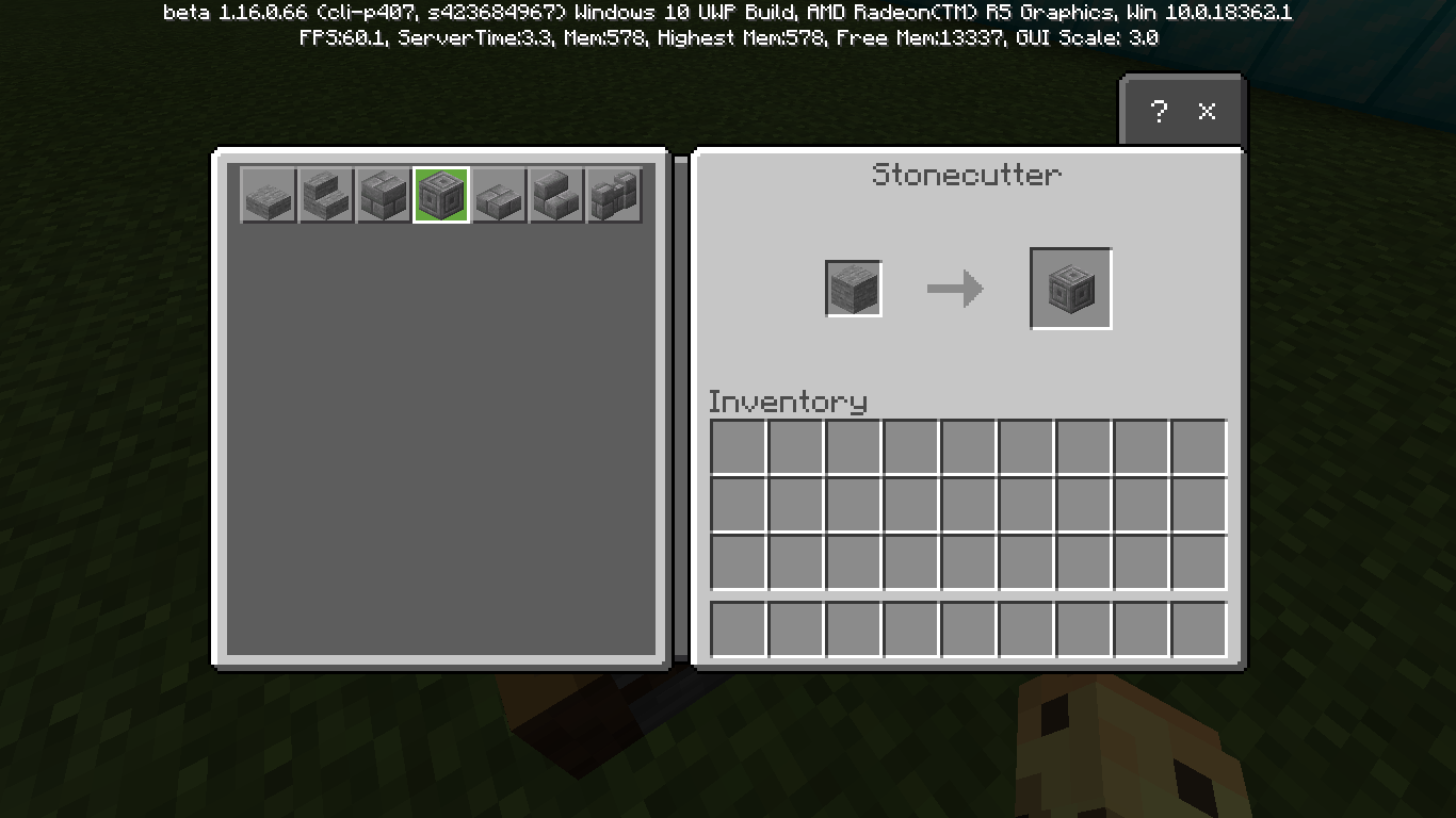 When hovering over recipes in the stonecutter, tooltips are not shown.