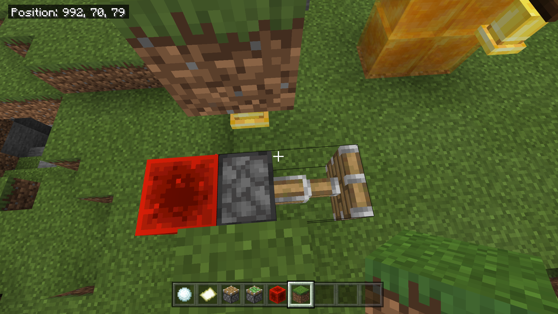 The hitbox of the piston body is too large when it is extended. The hitbox of the piston head matches its shape, but the hitbox of the piston body is a full block and doesn’t match its shape. This prevents you from interacting with blocks behind the piston. For the piston head the hitbox also used to be a full block, but that changed in 1.8, but the piston body still has the wrong hitbox. On java edition that part of the block is completely missing from the hitbox MC-124459.