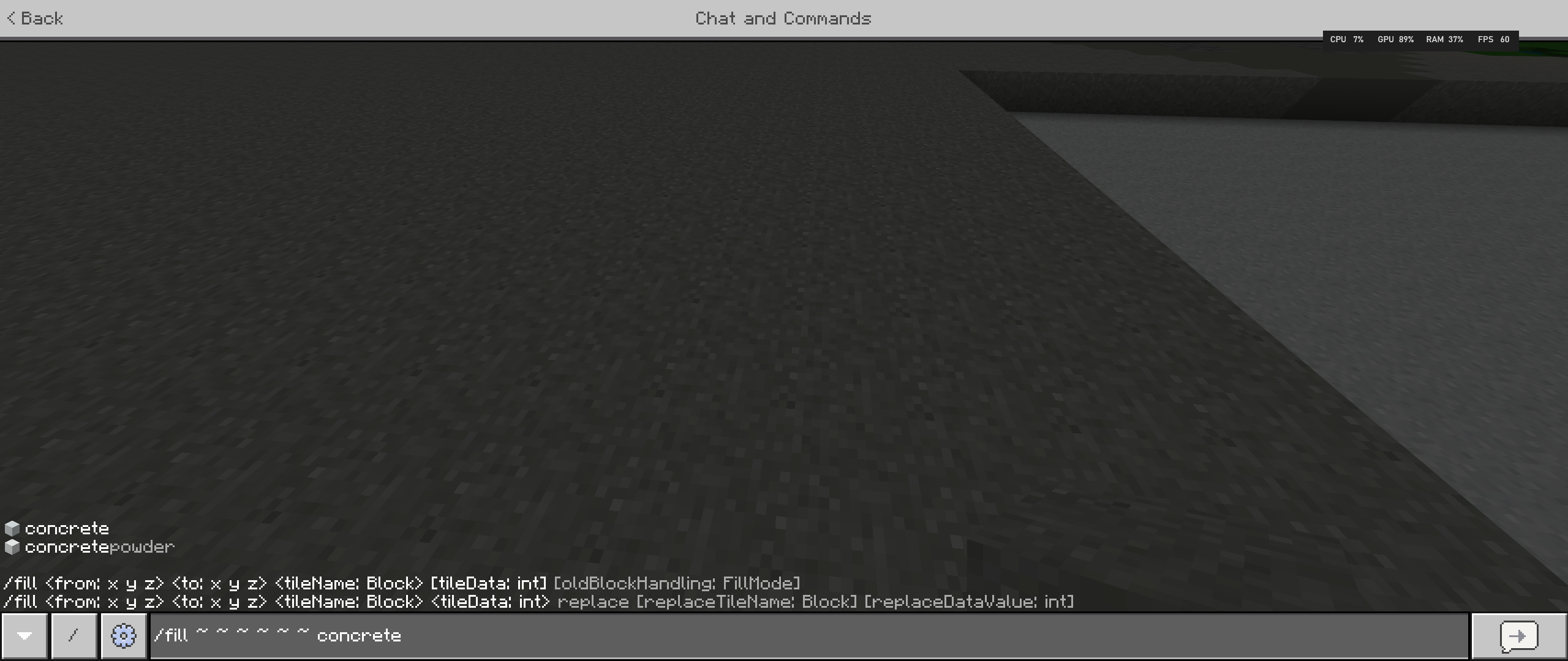 Minecraft Bedrock uses data values on certain entries to provide variants. For example red concrete is /fill 0 0 0 1 1 1 concrete 14
