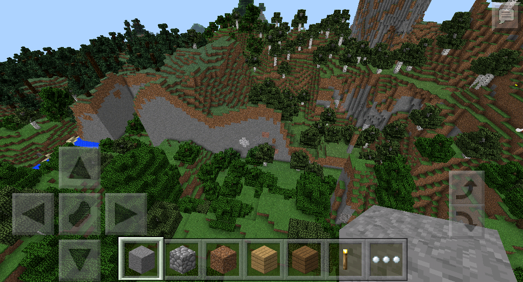 The tablet version is unknown to me. I generated an old world, and then quit to test out the option to make it infinite. So when I did I found that the world ended up spawning with borders much like the far lands, 20 blocks above the ground beside it! The bordering Biomes were plains, Forest, and swamp, (on the inside as part of the original generation with the old world) but the whole area was engulfed in an extreme hills biome! (just on of the flat-ish areas of them though.) And finally, I looked towards the river in the original old world, and I saw that A glitched mountain spawned in the chunk over top of it! The Mountain spawned only inside of the one chunk, and only directly above the river biome's water!