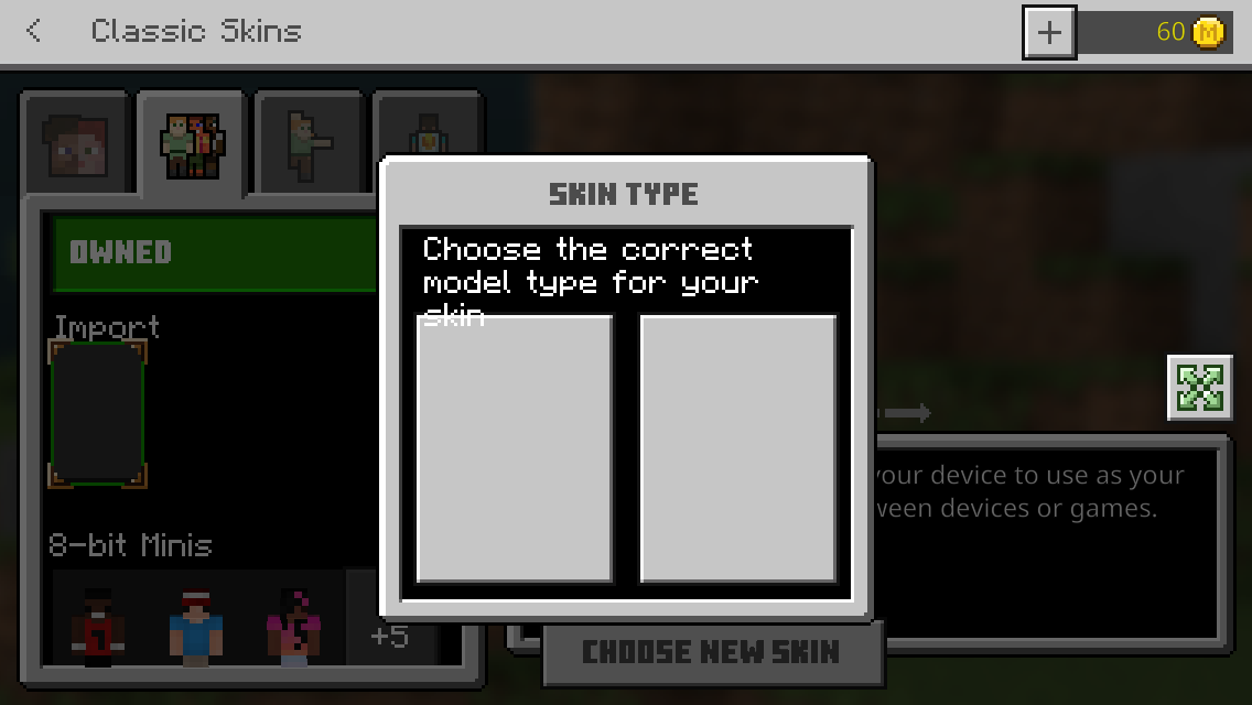 When I tried to change my skin, it went transparent and still is transparent. I don't know what to do or how to fix it. When I deleted the game and installed it again, it deleted all of my worlds and was only a temporary fix.
