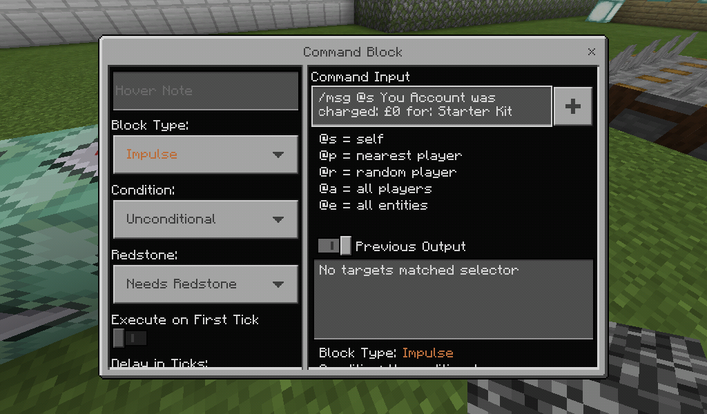 When I use a command block with an npc I set it up to give you a starter kit. But I used the @s selector. When I execute it it doesn't work. I tried without a npc but it still dosent work. I can't use @p if multiple users are going to be using it someone else might get the kit. Now I'm having to wait until it gets resolved because it's all paused until fixed NOTE: THE £ ICON IS A SCOREBOARD