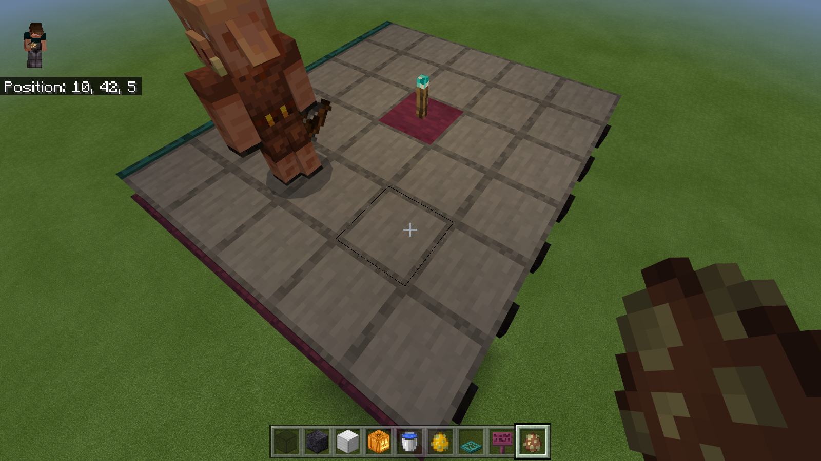 Spawn either a piglin and place a soul torch in the middle, or spawn a creeper and spawn a cat.