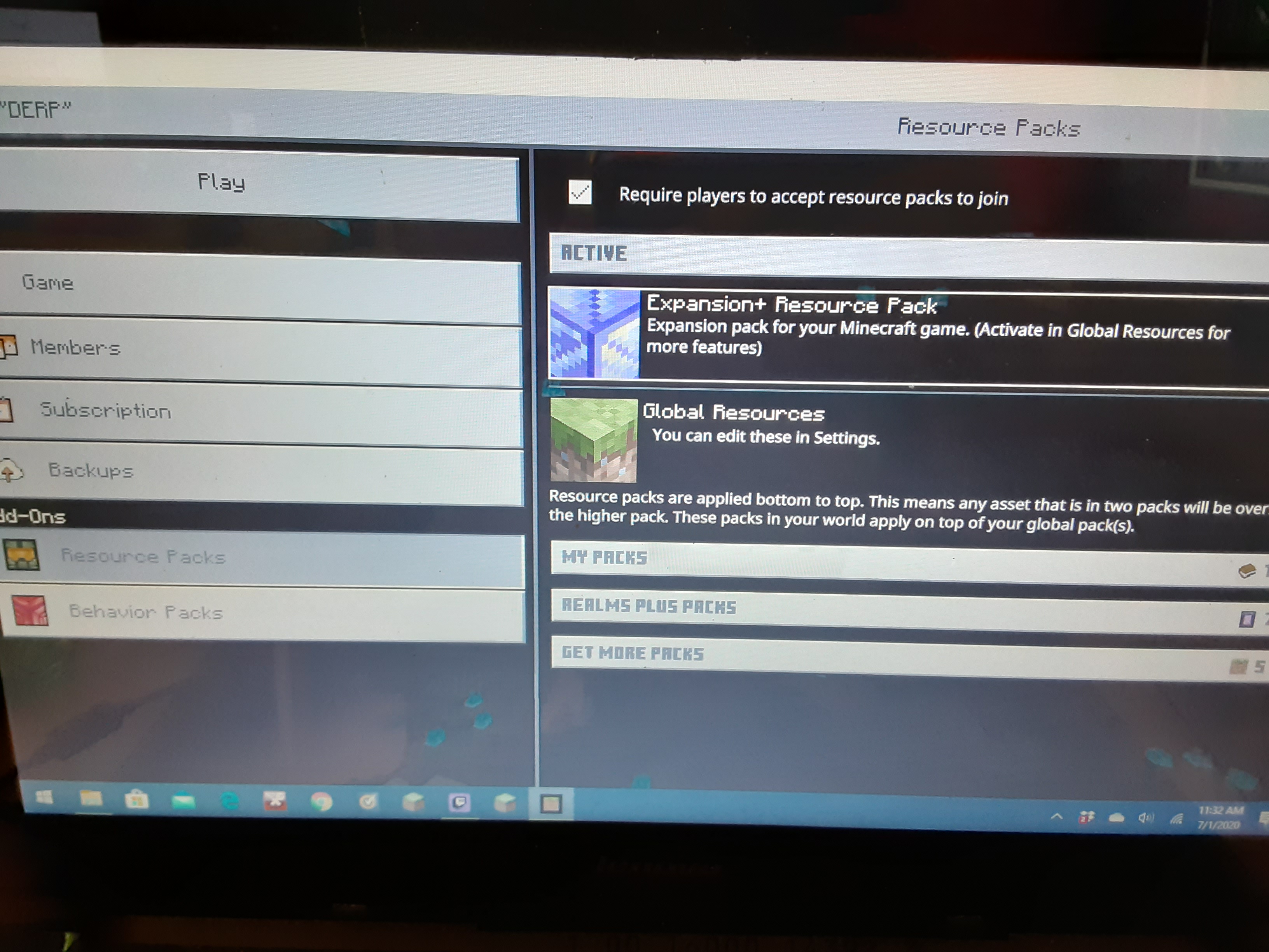 And when i review my resource pack tab on both platforms it bugs out on xbox while perfectly fine on Windows 10