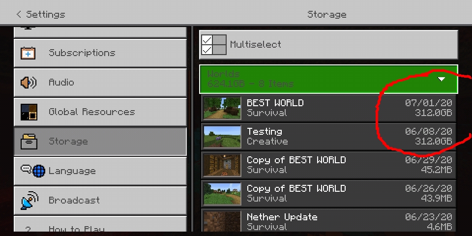 um.. that happened to me as well... when i save and quit it says 32.5MG but when i copy that same world its like 32.1MG