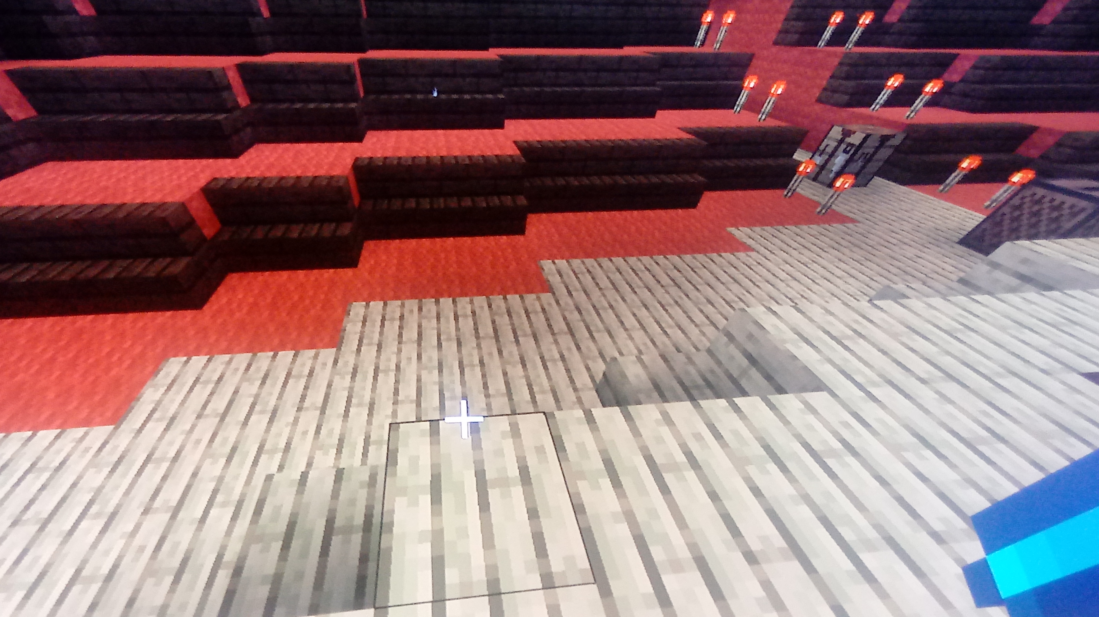 Recently, after the nether update which apparently changed mob spawning, my friend and I have been encountering problems with lighting. My friend and I were building a theatre in survival mode. On a world from earlier this year, we also built a theatre in survival, and for the seating, we lit it up with Redstone torches as we didn't want a lot of light there during the performance. This time, when we lit up every part of the seats with Redstone torches, mobs still could spawn. It was like the redstone torches didn't affect the lighting at all. Then, we decided to put regular torches underneath each stair block, however in the three blocks of space between the stage and seats, there was a little area of shadow, somehow this was enough room for mobs to spawn, even though it was not that dark. There is an upstairs area which we have lit up with torches yet still seems to spawn a lot of mobs. I will attach pictures of both areas I just described. I understamd that mob spawning needed to be fixed, but it feels like mobs just disregard any light, or spawn in an area if it has just the tiniest bit of darkness.