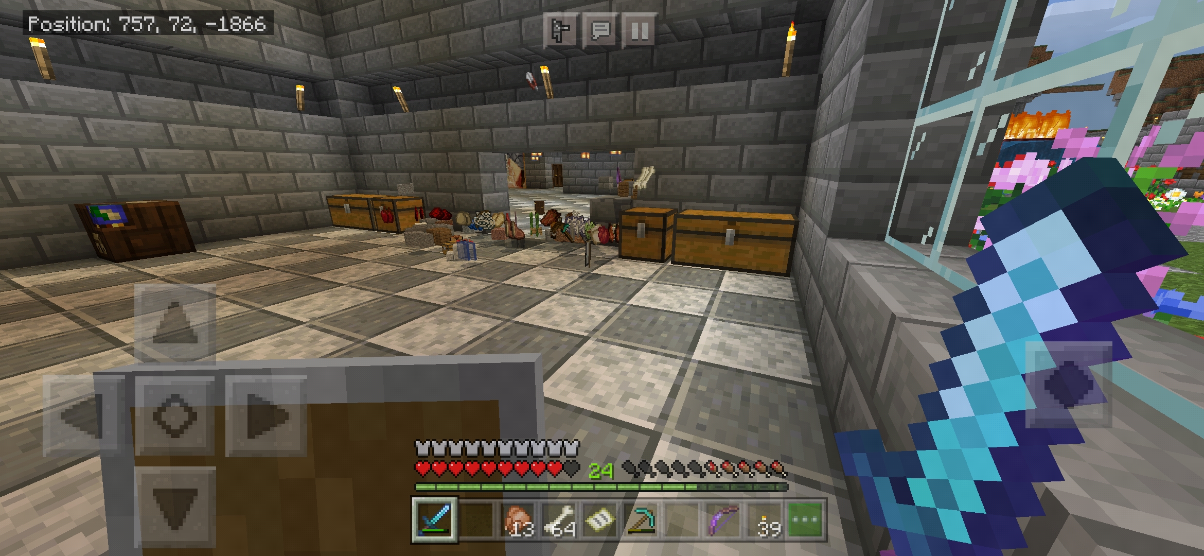 Been building for MONTHS. Today I update and when I go on o grab my best horse and go for a ride. I exit the game on the horse, and when I log on... The horse and 3 others are completely gone. No saddles where they were tethered and no armour. Poofed. Then as I'm approaching my build I suddenly see 2 explosions by the one tower wile I am quite far. One outside a tower and one in my craft room. I enter through the hole in the tower to see the craft room and it appears that 2 creepers exploded randomly. All my ocelots and dogs are not where I left them either. What on earth is happening? This world is not on a server and is all survival. I'm the only player on it. These don't seem like typical bugs. Attached are pictures. One of where I was when I logged off wile still on horse, however I log back on and its gone, and the other is the hole from a random explosion