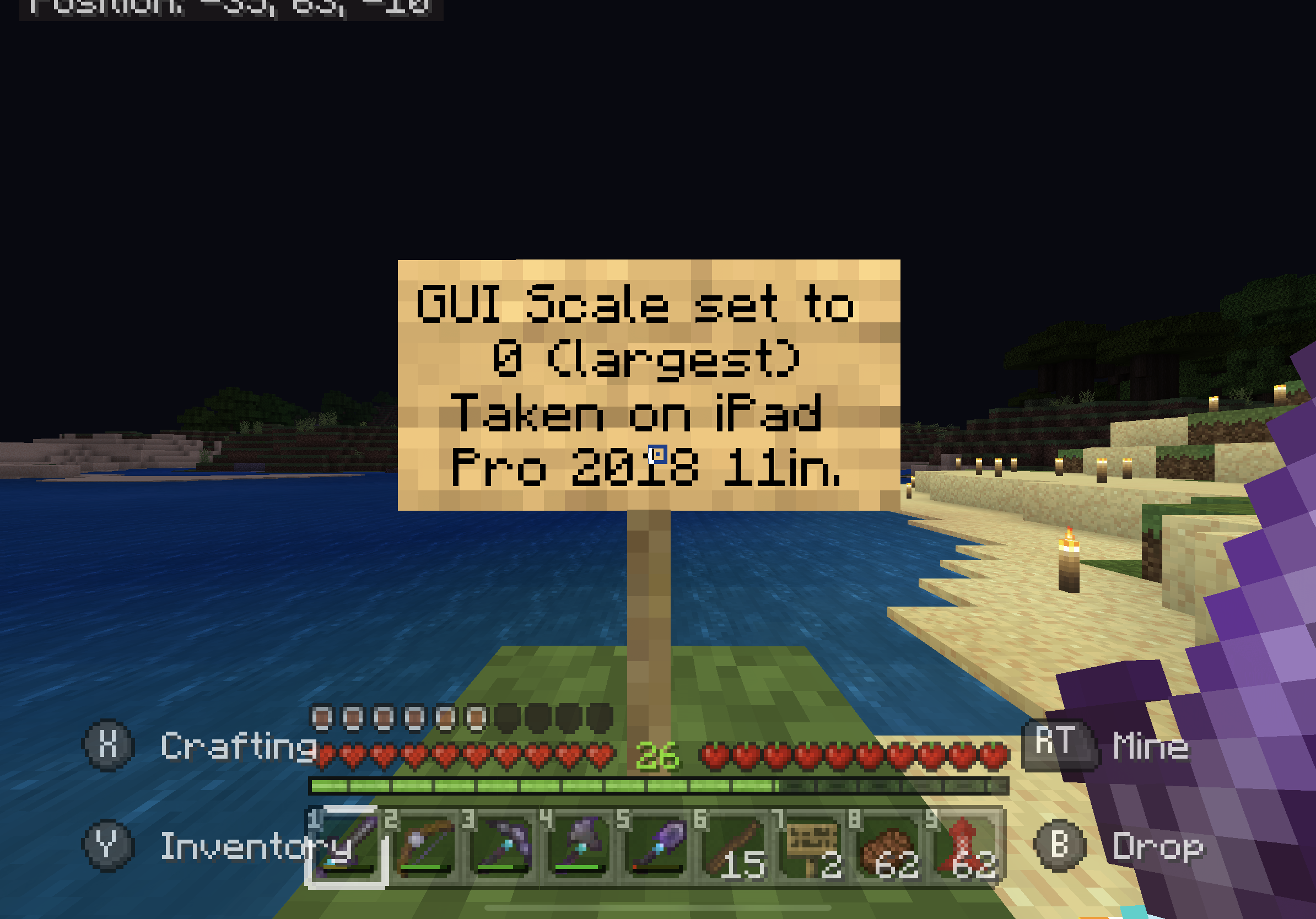 Included pictures display this at all three of the GUI scale. Coordinates are shown at the top left-hand side.