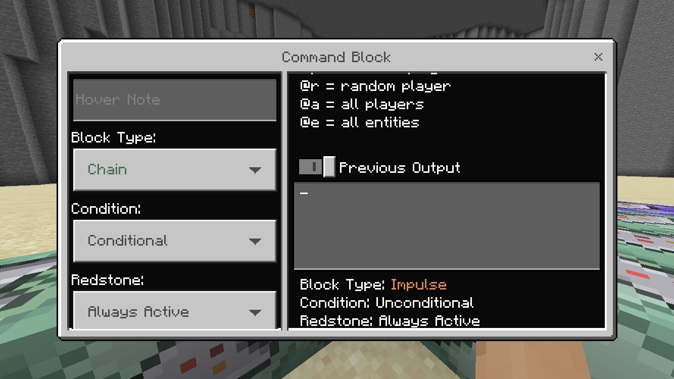 When placing command blocks, new ones will be stuck on "Impulse", "Unconditional", and "Needs Redstone". It should change to other types of command blocks, like "Repeating" or "Chain", but it's stuck on these settings. Sometimes this bug doesn't happen and it can change between types. Old command blocks before the update are still functional.