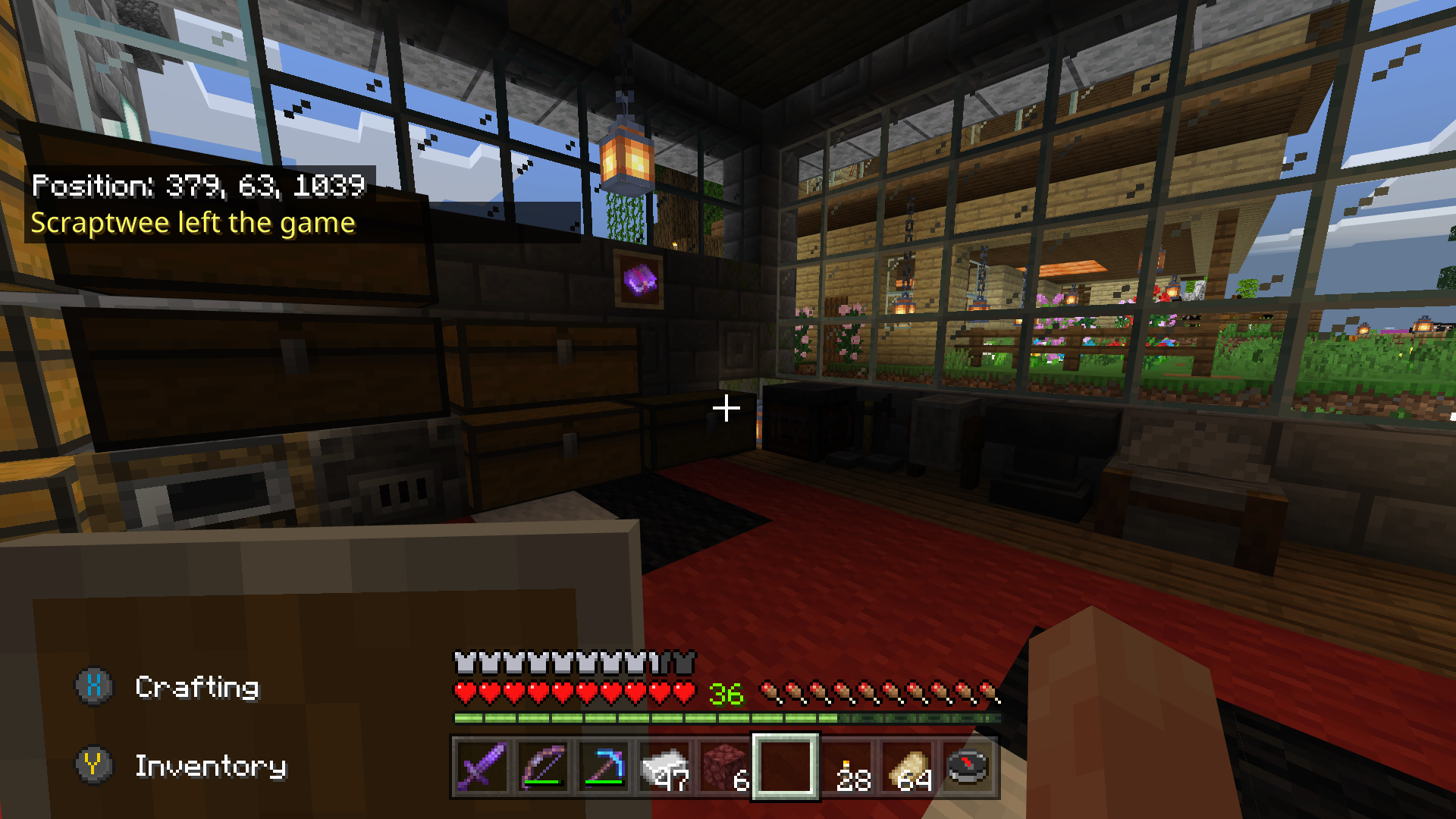 When returning from the Nether, sometimes the light is glitching, places where torches, lantern are placed are not illuminated. After placing a torch (or lantern) the place is illuminated. After removing the torch the illumination is fixed.