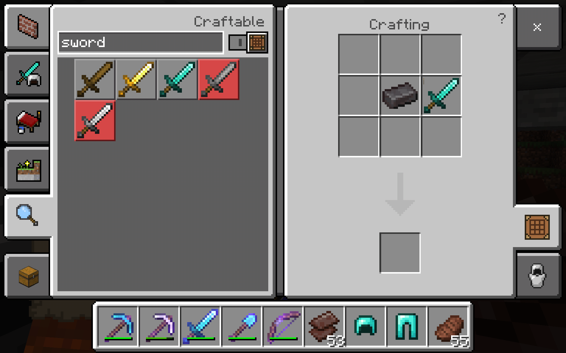 I have nethrite ingot and diamond sword but can not craft and no recipe but can get in creative. 😰😰
