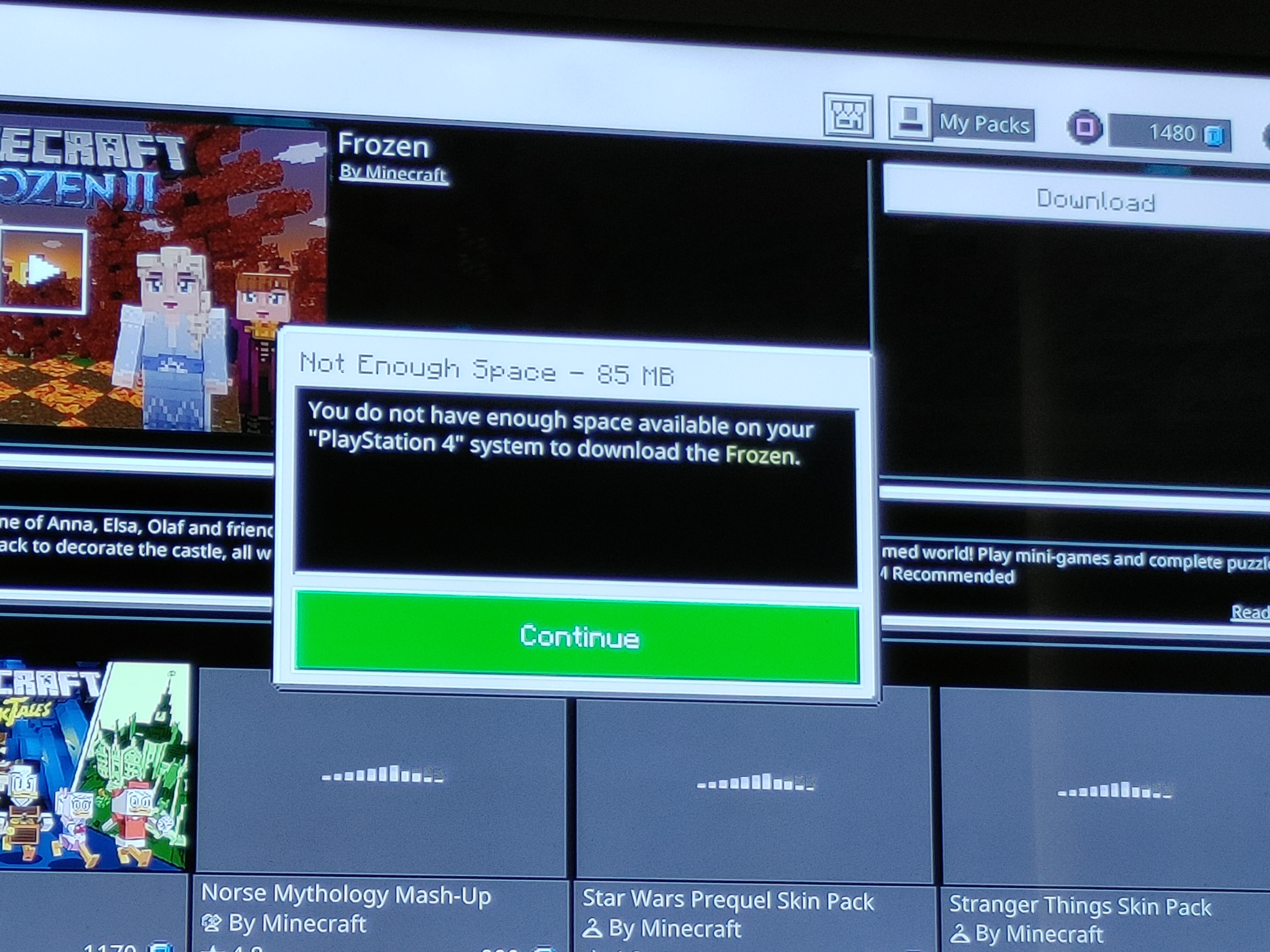 Bought some packs for my kids to play but when trying to download them it shows theres not enough space. They have the current patches and everything for the game already. Last patch is version 2.0 on july 23 at 8.59am must. They are disappointed they can not play their new maps.