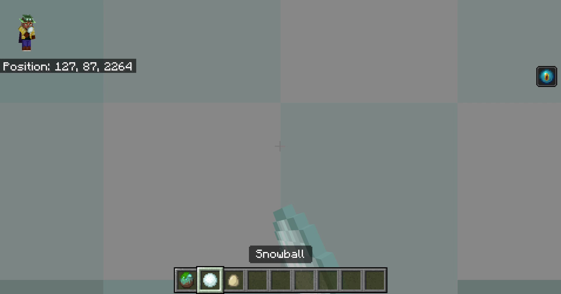 When throwing an egg/ender pearl/snowball/splash potion/experience bottle, it renders immediately right in front of the camera, causing a white flash on screen for just a moment. This was previously considered normal, however this behavior has been changed in recent java versions. The snowball now has a slight delay on rendering, after being throw, so it doesn't cause the white flash: