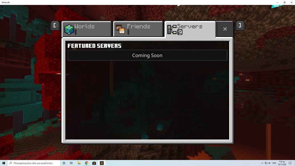 Hello, since the 1.16 came out i found these 2 bugs. The first one is thaT the title of the game Minecraft doesnt appear and I have to relunch the application. The second bug is that sometimes when i go to the server tab it says coming soon and I have to relunch the application!