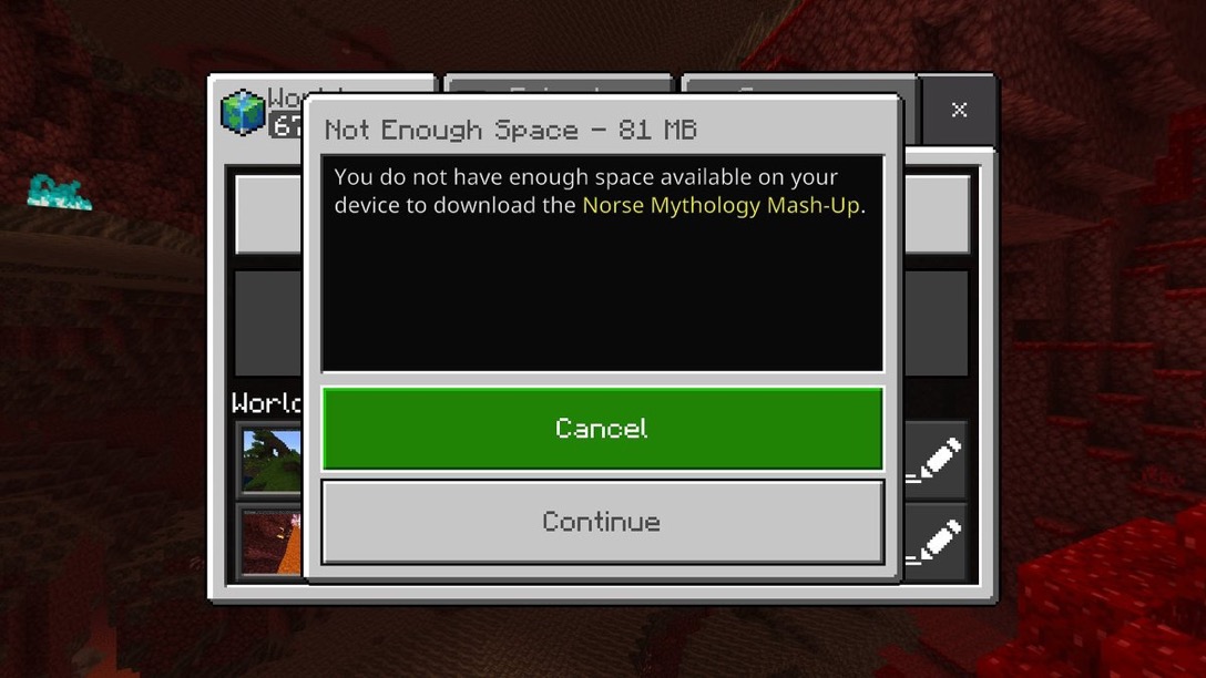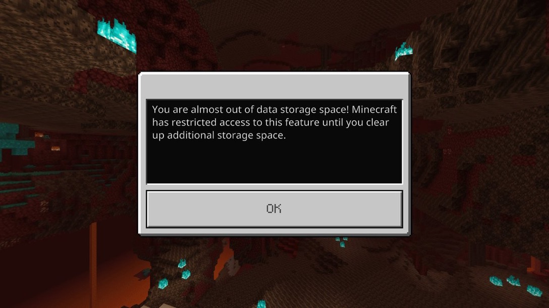 Whenever I try to make a mash-up pack world or download texture packs, the game tells me that I am running out of space, despite the fact that both my console’s internal storage and SD card of plenty space left. This problem is just now occurring, and has never happened to me before on other Minecraft versions.