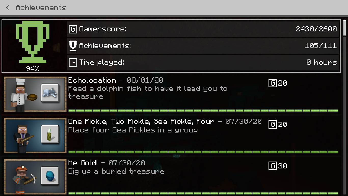 In the Archivments minecraft says "0 hours time played" but xbox say's the real time
