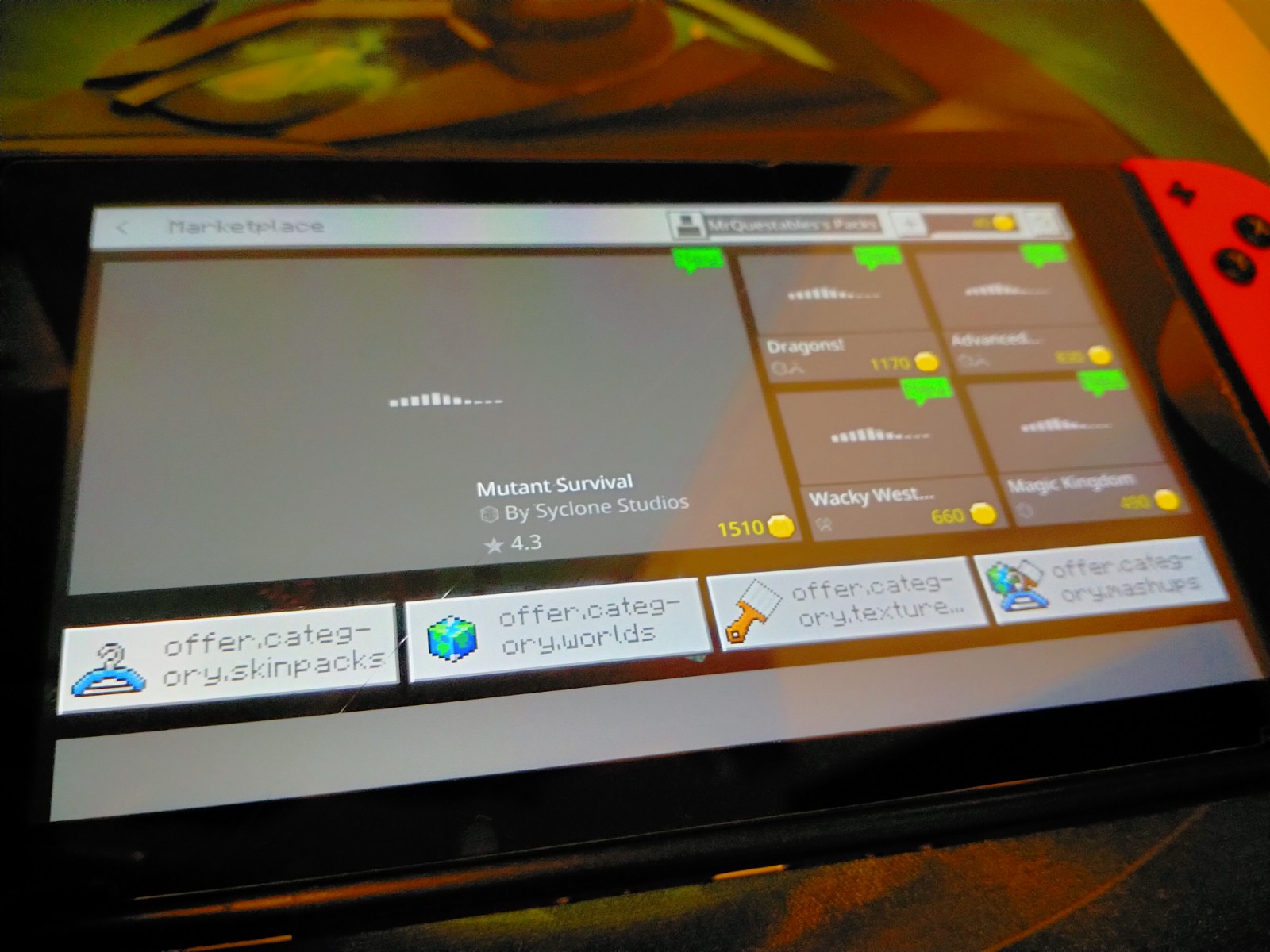 Minecraft For Nintendo Switch Achievements, Marketplace, and Character creator has issues loading Images and Achievement icons, this also includes not properly loading Character creator icons.