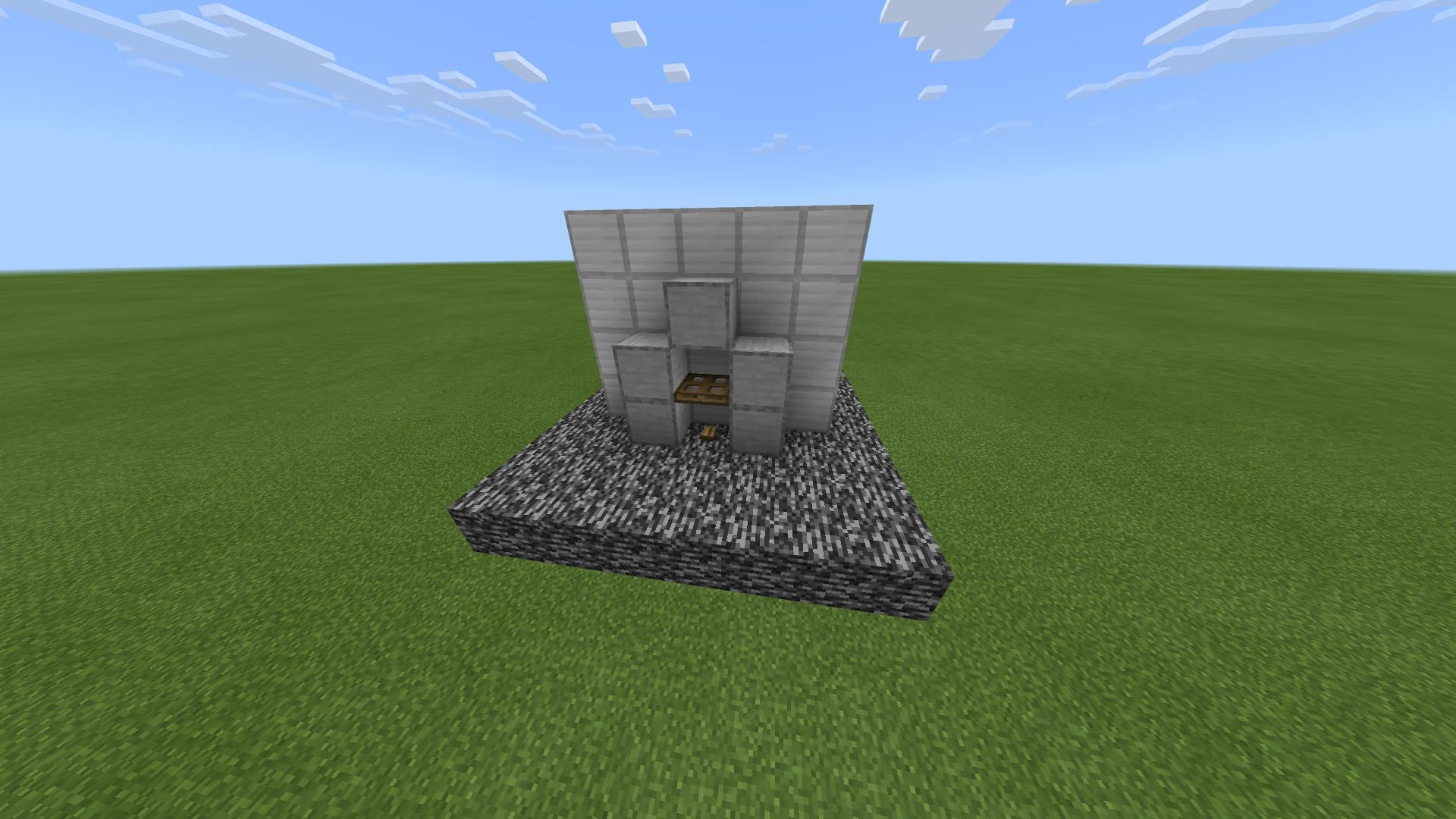 I noticed that when a player presses the button on the floor and walks into the activated trapdoor, the player would often clip through the wall. I used iron blocks for the wall, an oak trapdoor, and a wooden button in the screenshots, however; after a bit of experimentation, I found that really any combination of blocks, trapdoors, and buttons seem to work.