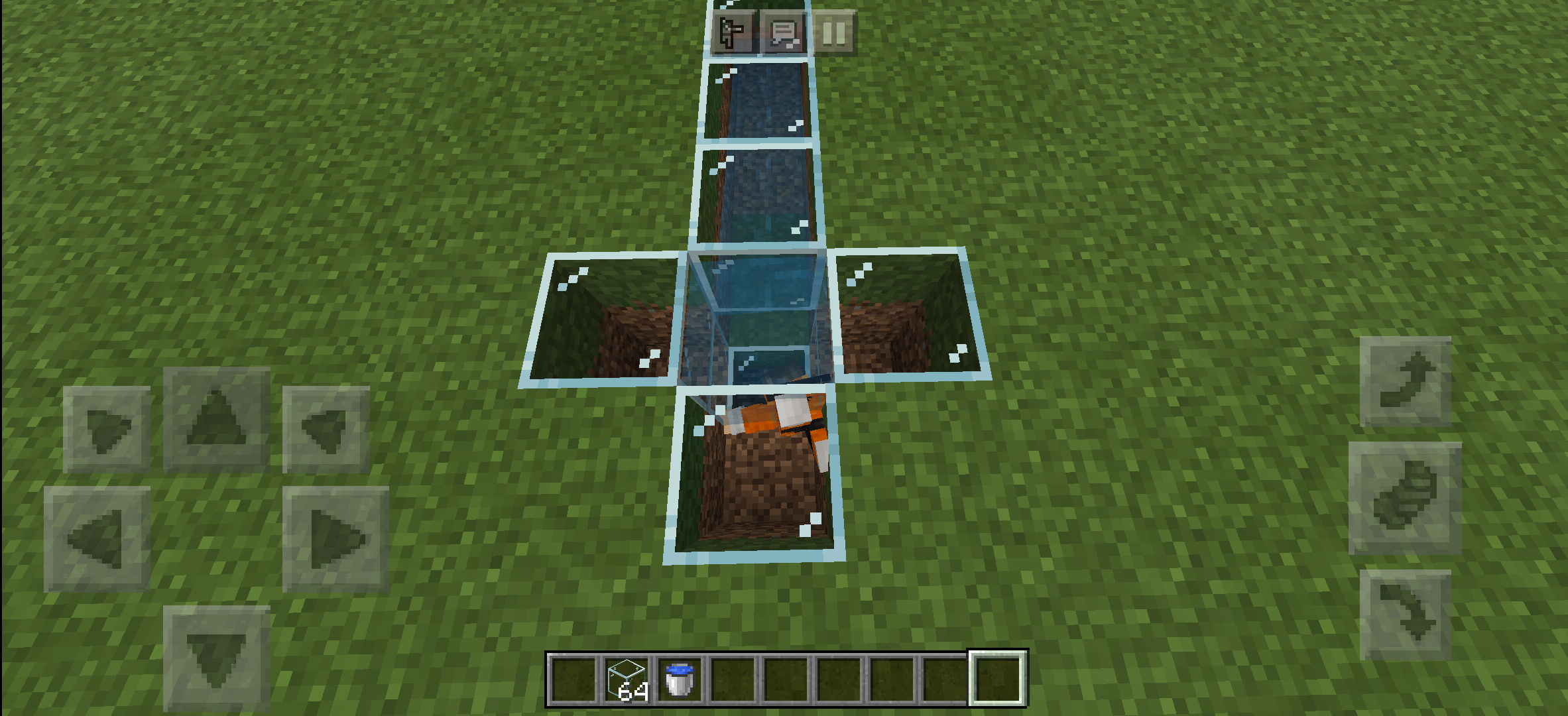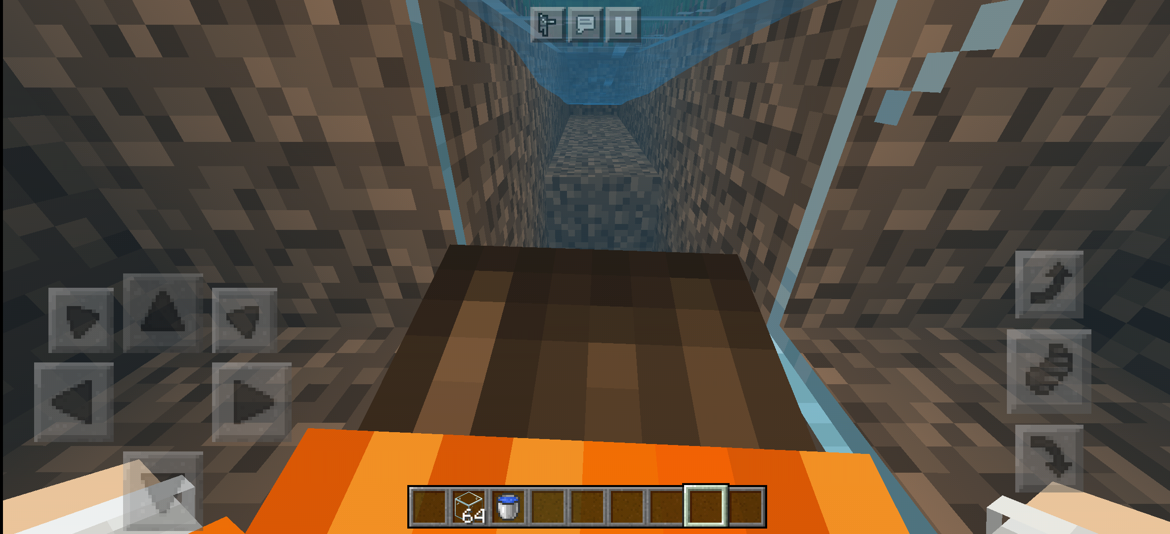 A player enters a water area 2 blocks high, but cannot swim in a 1 block gap.