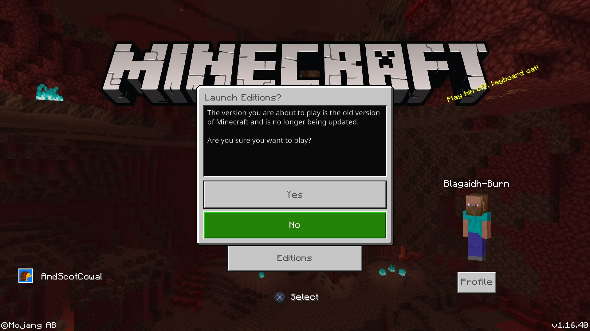 AS above, not able to play the current version, no editions listed. Just says you are playing an old version, do you want to continue.