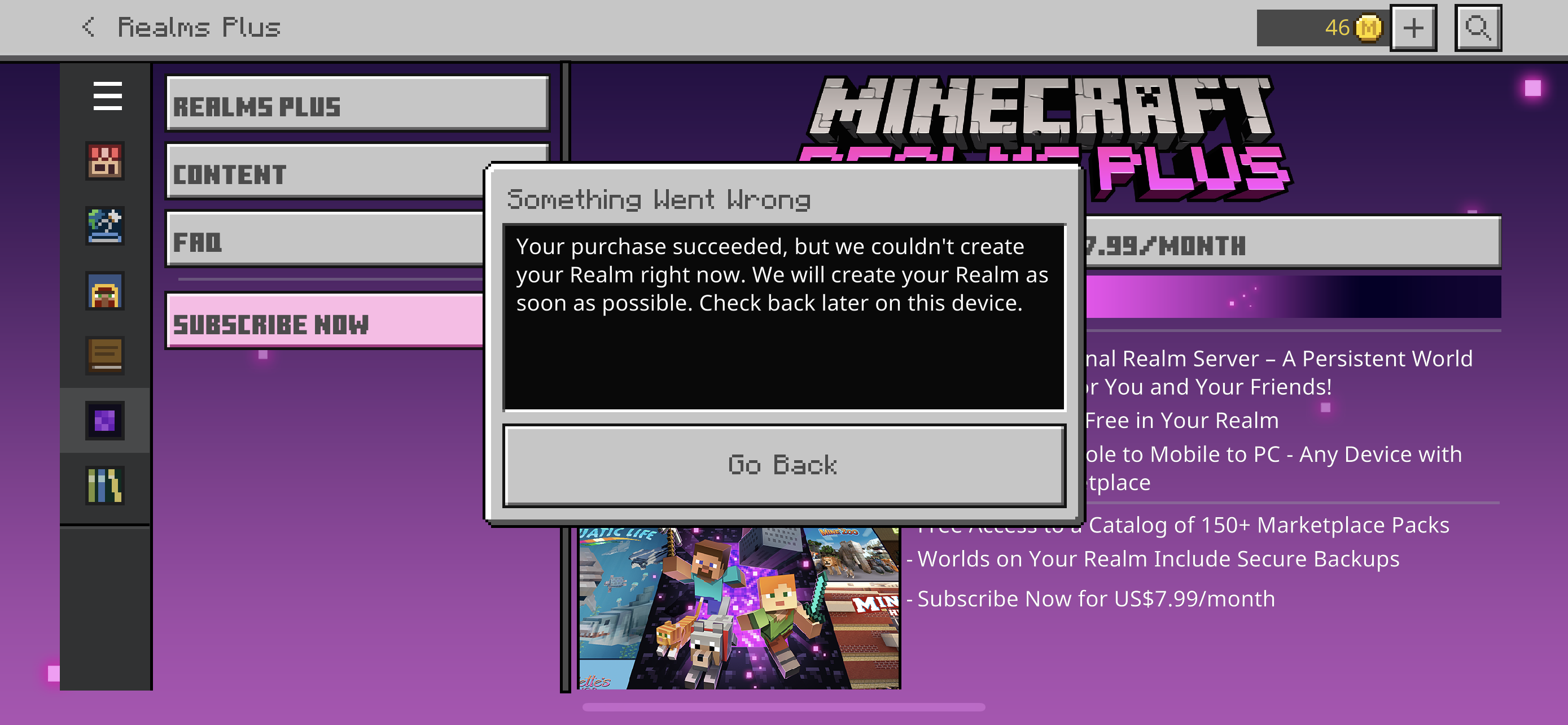 If you are still not able to access your purchased realm please contact the Minecraft Help Center